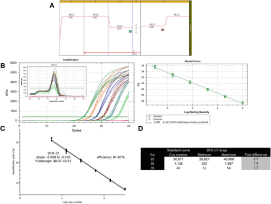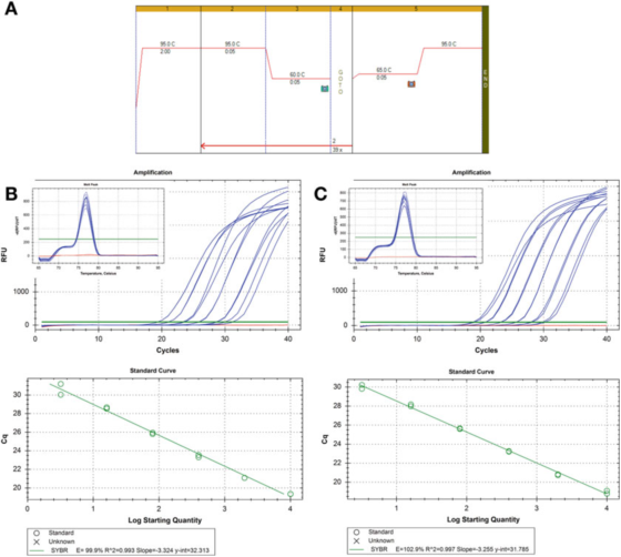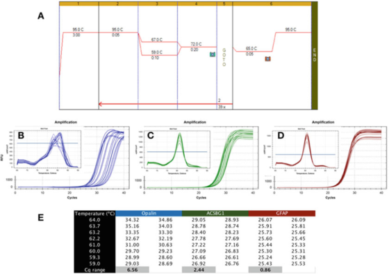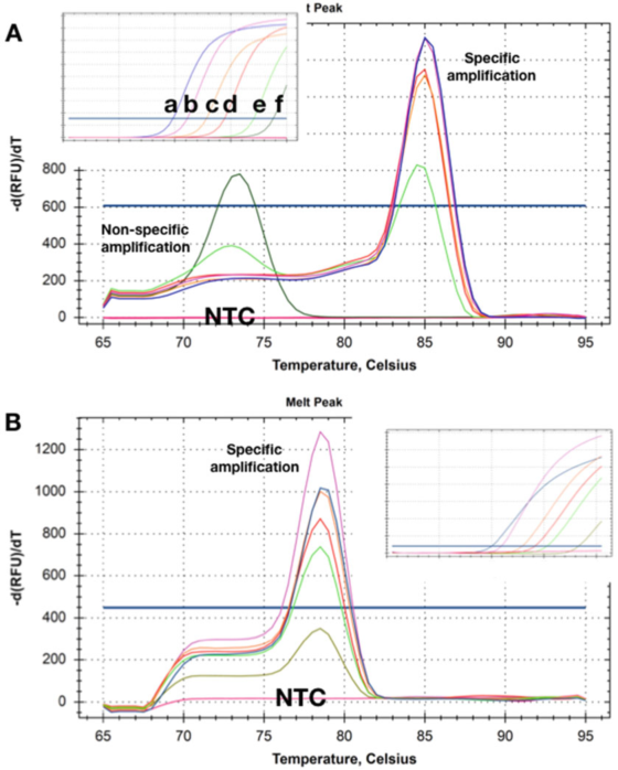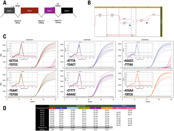 这是一个技术专栏,在这个专栏当中,由全球诊断技术大咖为大家带来诊断技术开发方面的技术谈谈,这是本系列的第十一篇,我们非常有幸邀请到了Anglia Ruskin University的STEPHEN A. BUSTIN教授为带来关于引物设计的讲解。 4 检测的特异性 在大多数情况下,引物设计的目的是最大限度地提高PCR的特异性,这是由许多变量或多或少可预测的影响决定的,其中一个重要变量是引物3’端的序列。 重要的是,为特异性而设计的PCR测定更有可能在宽的动态范围内保持高效率,因为该测定不会产生非特异性的扩增产物,从而竞争PCR试剂或抑制主扩增反应。 当然,在有些情况下,特异性不是最重要的,例如,当目的是量化密切相关但有差异的病原体时,就需要特殊的设计、优化和验证标准。 溶解曲线是评估扩增子特异性的标准方法,至少在是否扩增单一目标方面是如此。然而,必须强调的是,溶解曲线可能具有误导性,因为例如,它们可能受到次优引物和低模板浓度的共同影响。 图5 | 熔解曲线显示了从两个针对不同数量的两个目标DNA的检测中得到的Tm转移。 A、在较高的浓度下(a-d)),qPCR测定完成后没有明显的引物二聚体。随着模板浓度降低到50拷贝(e),一个非特异性产物开始出现,在最低浓度时成为唯一产物(f)。 B、该检测在所有目标浓度下都记录了相同的Tms,即使在最低浓度下(5拷贝)也没有明显的引物二聚体。使用这两种检测方法时,在NTCs中都没有检测到扩增产物。 图5显示了用模板以不同浓度存在的样品得到的溶解曲线。图5a显示,在两个最低的浓度下,产生的非特异性扩增产物的Tms比特异性扩增子低。 显然,这种检测方法不能可靠地用于检测存在于低浓度的目标。 有趣的是,NTCs,即完全没有DNA存在的样品,没有记录(非特异性)扩增产物,表明背景基因组DNA可以参与非特异性扩增/聚合作用。 有时这种背景引物和非特异性扩增是无法补救的,但往往可以设计出在任何模板浓度以及NTC中都没有非特异性扩增的检测方法(图5b)。 在这里,即使是记录Cq为35的目标浓度的扩增,也会产生一个特定的溶解曲线。同样,NTCs没有显示出非特异性放大的迹象。有时,检测行为可能是依赖于母液的,只有在某些缓冲液组成中检测到非特异性扩增,可能与不同的Mg2+浓度有关。 5 检测的稳定性 Ta的优化是qPCR检测的经验验证和优化过程中的一个有用步骤。它通过显示产生最低Cq而不扩增NTC的温度(或温度范围),提供了一个引物组稳健性的直接指示。 灵敏度的两到四倍差异对针对高表达mRNA的人来说可能并不重要,但对诊断性检测来说,它可能意味着阳性和假阴性结果之间的区别。 qPCR引物的Ta特性可能差别很大。有些检测不是很稳健,如果不是在引物的最佳Ta值下进行,就会很快崩溃。 这一点很重要,因为这类检测在现实世界中往往也是有问题的,样品的纯度、DNA浓度或其他DNA的存在都可能不是最佳的。 此外,目标拷贝数可能在很大的范围内变化,试剂、塑料器皿或仪器可能与建立检测时所用的不同。 图6|温度梯度显示了PCR检测的不同稳健性。 A、使用Bioline的Sensifast SYBR mastermix(目录号BIO-98050)对从人脑RNA制备的cDNA进行PCR的方案。 B、使用Bio-Rad公司的CFX qPCR仪器对阿帕林(NM_033207, F: GCCATGGAGGAAAGTGACAGACC, R: CTCATGTGTGGGTGATCTCCTAGG)进行扩增图和溶解曲线记录。 C、ACSBG1 (NM_015162.4, F: CTACACTTCCGGCACCACTGG, R: GTCCACGTGATATTGTCTTGACTCAG)的扩增图和熔解曲线。 D、GFAP (NM_002055.5, F: TGGAGAGGAAGATTGAGTCGCTGG, R: CGAACCTCCTCCTCGTGGATCTTC)的扩增图和溶解曲线。 E、在不同的退火温度下记录的Cqs,显示了在7C温度梯度下记录的Cq的差异。 图6显示了一个不理想的检测的典型结果,其中qPCR使用59 C和67 C之间的梯度Tas(图6a),使用针对三个人脑特异性基因的引物进行的。 从扩增图中可以看出,Opalin引物远非理想,因为它们的最佳Ta范围很窄(图6b),也就是说,Cqs被广泛分散,导至Cqs与它们的最佳Cq相比明显偏低。 这种检测方法不稳定,很可能导至次优扩增,因此,应该重新设计这对引物。此外,溶解曲线分析(插图)表明,这种检测方法的特异性也可能存在问题,因为每个Ta的溶解曲线都不一样。 图6c所示的ACSBG1检测方法比上面的Opalin检测方法更稳健,但仍远非理想,很可能还可以改进。 然而,我们强调,稳健性和特异性没有必然的联系,因为这种检测方法产生的溶解曲线在所有的Tas都显示出相同的峰值(插图)。 另一方面,稳健性检测的容忍度要高得多,在广泛的Tas范围内产生类似的Cqs,如图6d所示的GFAP检测。 在相同的8摄氏度范围内得到的Cqs相差不到1,溶解曲线(插图)证实了该温度范围内的检测特性。值得注意的是,计算的Tas和实际的Ta范围可能有很大的不同。 有许多旨在帮助研究人员设计高效引物的指南,大多是基于长期以来建立的规则,并对引物的3’端给予了很多关注。经常给出的建议是在3’端包括一个G或C,并且有两个G或C碱基(GC钳),但最后5个碱基中不超过两个。 在实践中,这些规则可以指导研究者,但不一定在任何情况下都是正确的。 图7 | 引物3’端对特异性或效率的影响极小。 A、针对人类HIF-1α(NM_181054.2)基因的引物的位置。 B、使用安捷伦Brilliant III SYBR Green母液(目录号600882)扩增六个检测项目的方案。 C、由Bio-Rad的CFX qPCR仪器和3’端引物记录的扩增图和溶解曲线。NTCs显示为红色。 D、每个检测项目的Cqs记录 例如,图7中的结果与3’端规则相矛盾,所有设计产
