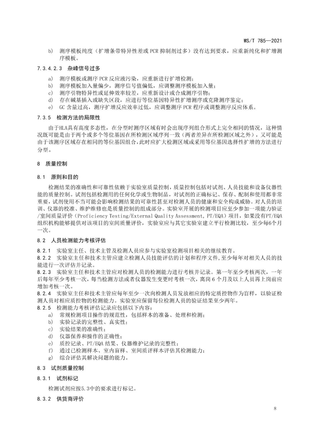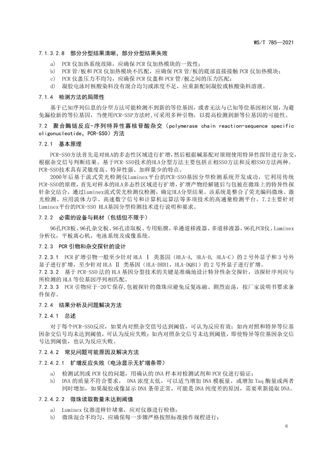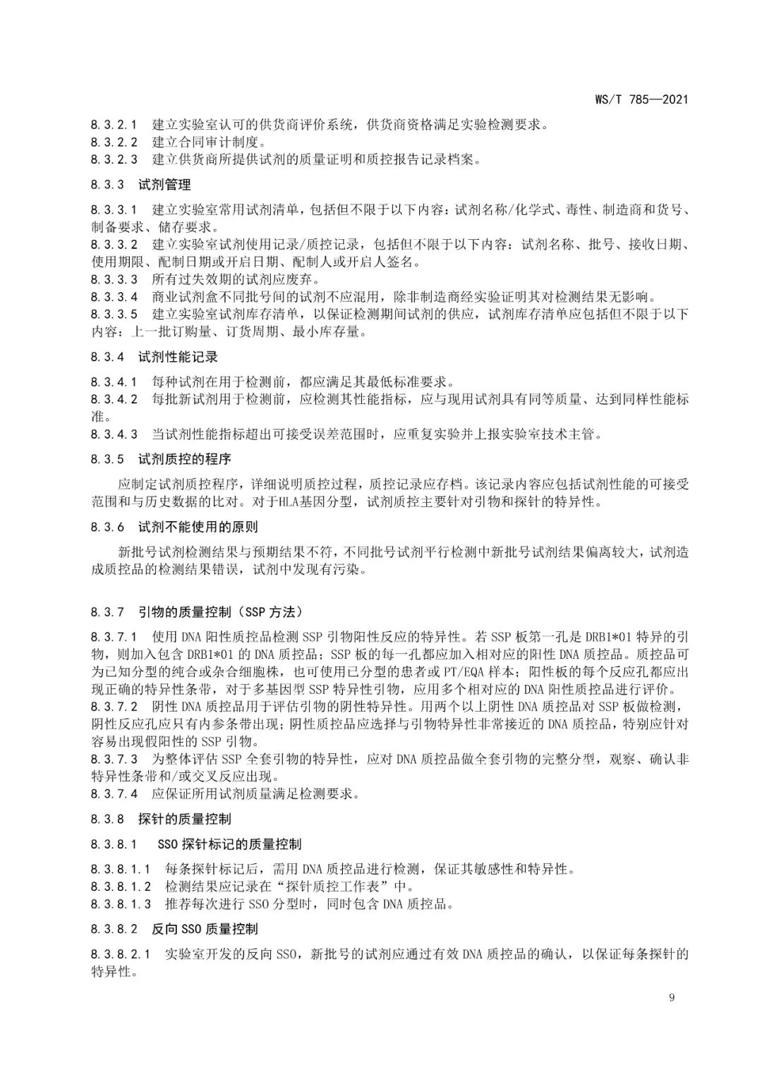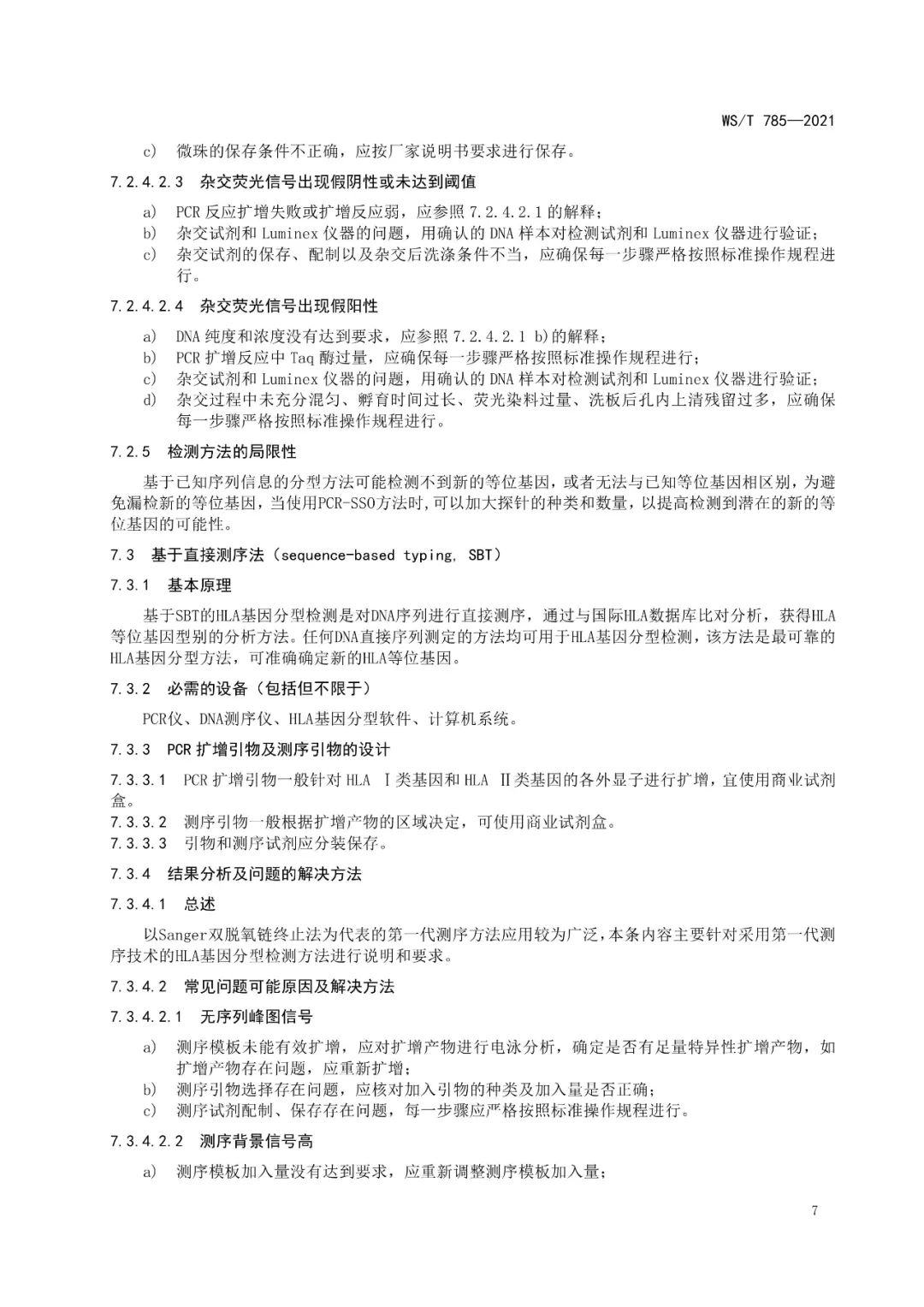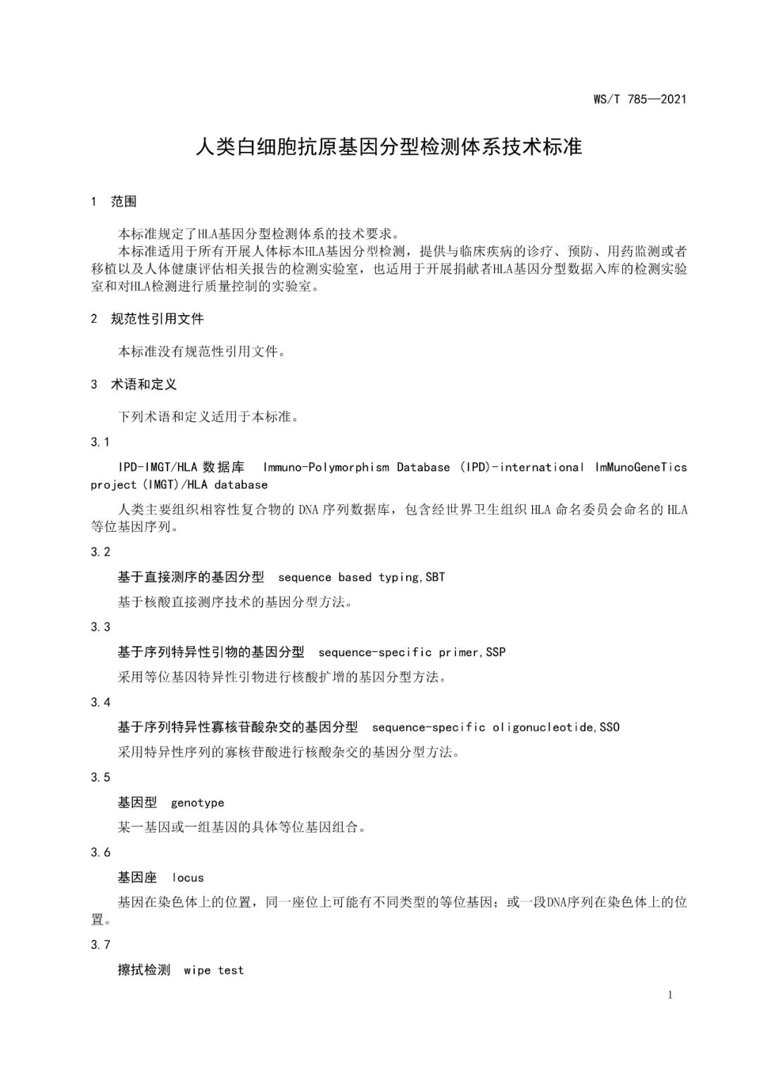 《人类白细胞抗原基因分型检测系统技术标准》