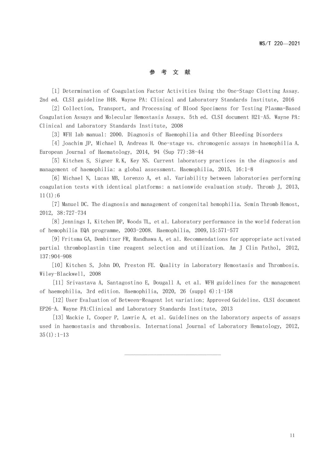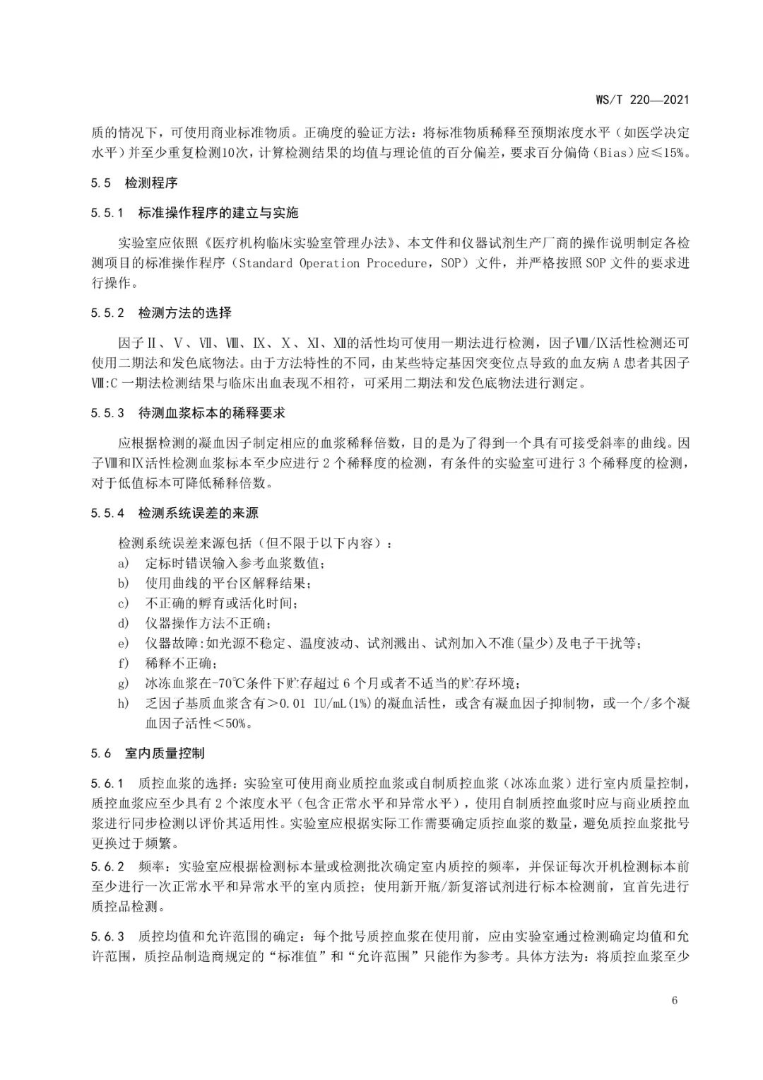 《凝血因子活性测定技术标准》