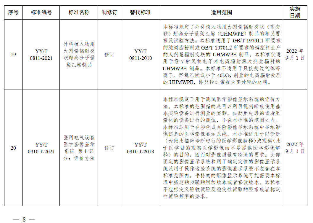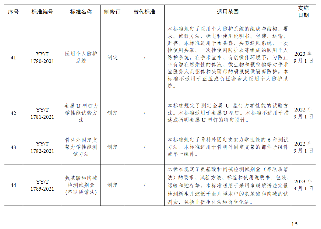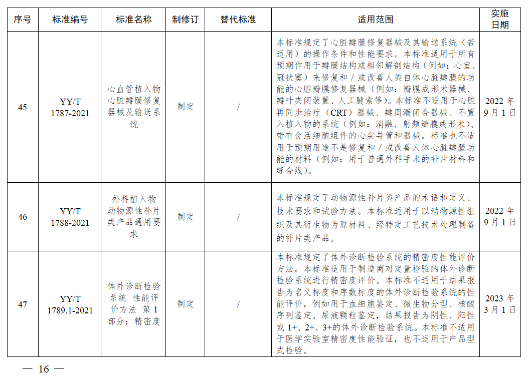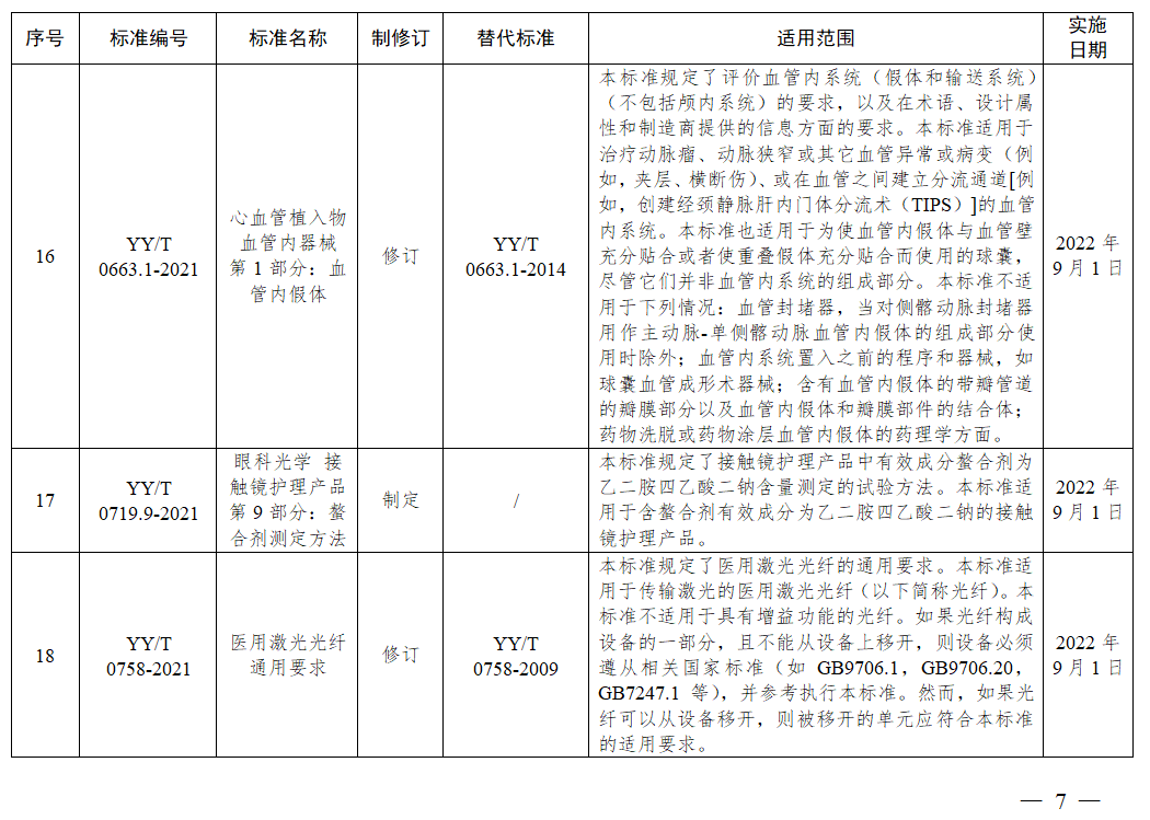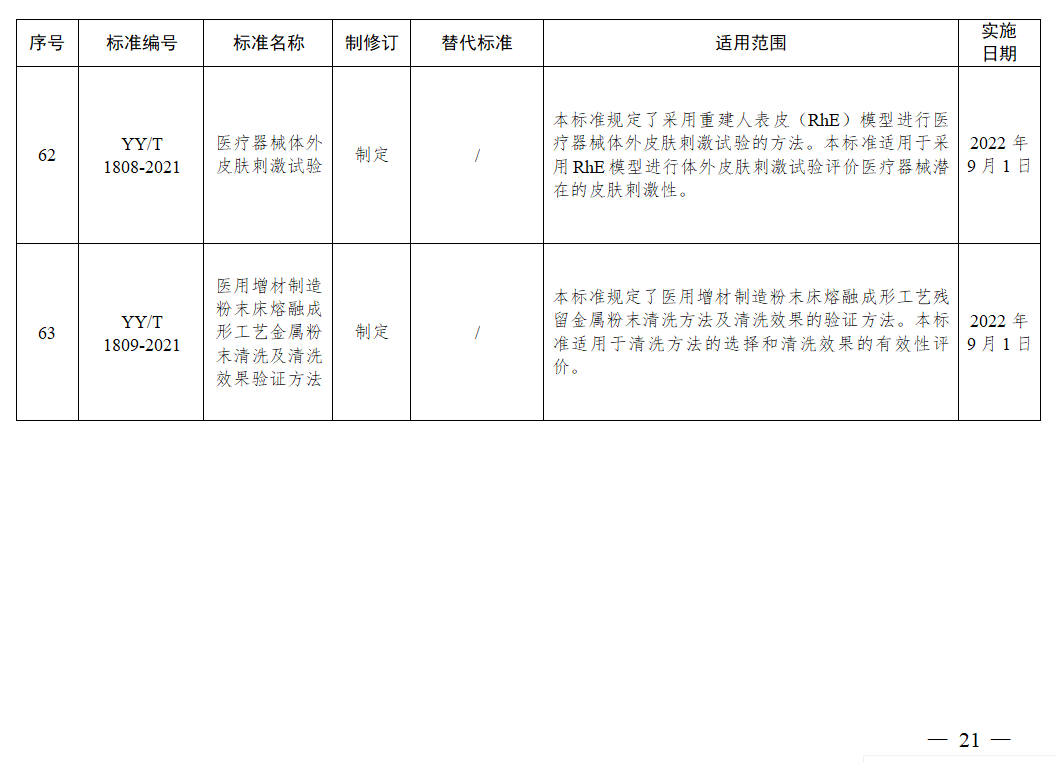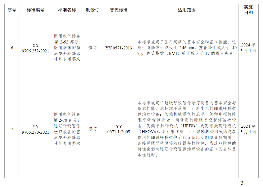 YY 0671-2021《医疗器械 睡眠呼吸暂停治疗 面罩和应用附件》等63项医疗器械行业标准已经审定通过,现予以公布。标准编号、名称、适用范围和实施日期见附件。