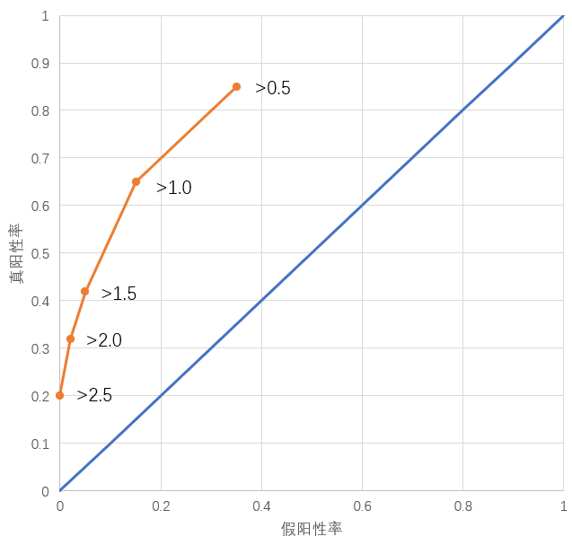 刘博谈验证 这是刘博谈验证的第二十一篇,在本篇中,我们来讨论如何设计测试的性能评估试验。 9、系列截止点的真阳性率和假阳性率之间的关系可以用图形表示。 该图被称为接受者操作特征(ROC)曲线,ROC曲线首先被用来表示雷达系统在区分战机和雷达屏幕上其他物体的性能,图2.4是运动心电图的ROC曲线。 ROC曲线用图形表达了一个基本规则:当你调整截止点以测试更多的疾病患者时,你不可避免地将更多的非疾病患者标记为有疾病。 例如,图2.4中的ROC曲线显示,当我们选择2.5mm ST段压低作为阳性结果的定义时,很少有假阳性结果。 然而,很少有冠心病患者在运动心电图上有如此极端的结果,如果选择这个分界点,会有很多假阴性的结果。 而选择1毫米的ST段压低来定义异常结果,可以测试到更多的疾病患者,但假阳性结果远远多于选择2.5毫米ST段压低时的结果。 图2.4 运动心电图作为显著冠状动脉疾病的预测指标的ROC曲线。数字代表ST段压低的程度(以毫米为单位),用来定义运动心电图测试的结果为阳性。 如何选择ROC曲线上的最佳分界点?最佳点是由疾病的预检概率(p[D])和把未患病的患者当作患病来治疗的成本(C)与治疗患病患者的收益(B)的比率决定的。 对于接近原点的点,ROC曲线的斜率相对较陡,这时真阳性率和假阳性率都很低。 当疾病比较少见或治疗比较危险时,临床医生应选择靠近原点的分界点,这种选择将有助于尽量减少假阳性结果的数量和对未患病患者的危险。 ROC曲线的斜率在右上角附近是平的,这里的真阳性率非常高,假阴性结果不常见,临床医生应该在患者非常可能患病或治疗安全有效的情况下,选择这个区域的Cutoff值。 在假阴性结果非常有害的情况下,这种选择会使假阴性结果最小化。 |