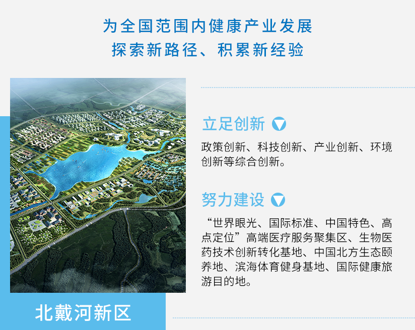 为深入贯彻实施《“健康中国2030”规划纲要》,6月10日,全国大健康产业园共同体成立大会暨签约仪式在北京隆重举行。 会上,河北北戴河生命健康产业创新示范区、海南博鳌乐城国际旅游先行区等12家园区共同发起组建全国大健康产业园区共同体,签订《全国大健康产业园共同体首期战略合作框架协议》,并联合发布“共同体宣言”作为共同体纲领性行动指南。 “全国大健康产业园共同体”的成立,是探索具有中国特色大健康产业园区发展新模式与引领全球大健康产业发展的有力举措。北戴河生命健康产业创新示范区作为“全国大健康产业园共同体”的发起成员单位之一,将与其他园区一起,共同探索我国大健康产业园管理方式,建立符合国际标准规范的大健康医疗产业园区运营规则。优化大健康产业资源配置,激发社会活力,完善行业自律及监督,营造公平竞争、协同发展良好环境;创新大健康产业园区发展方式,建立健全符合国际通行规范的大健康产业园区发展规则,形成中国特色大健康产业园区发展模式。 全球范围来看,以人的健康为服务目标的生命健康产业是具有巨大市场潜力的朝阳产业,正在成为世界各国国民经济的一个重要支柱产业。 深入领会《“健康中国2030”规划纲要》提出的全民健康发展新目标,加快生物医药和大健康产业基地建设作为实施“健康中国”战略重大平台。 国家战略平台 全力打造国家级生命健康产业创新示范区 当前,《“健康中国2030”规划纲要》已成为推进健康产业发展的行动纲领,也是我国积极参与全球健康治理、履行我国对联合国《2030可持续发展议程》承诺后的重要举措。 “没有全民健康,就没有全面小康。” “经济要发展,健康要上去,人民的获得感、幸福感、安全感都离不开健康。” 北戴河新区以创新思维、创新实践勇担健康中国建设使命。 区位优越 全力打造京津冀最美医疗旅游目的地 在国家“南有博鳌、北有北戴河”生命健康产业发展战略布局下,北戴河生命健康产业创新示范区作为推进京津冀协同发展战略、环渤海地区合作发展战略、承接北京非首都功能疏解重要区域,发展生命健康产业有着得天独厚的基础优势。 生态资源富集: 地处示范区核心区的北戴河新区位于秦皇岛西南部,北临戴河,南接滦河,西起京哈铁路和沿海高速公路,东至渤海海域。 北戴河新区气候宜人,冬无严寒,夏无酷暑,拥有被誉为“中国最美八大海岸之一”的黄金海岸。 区位优势显著: 北戴河新区拥有优势的区位、便利的交通,将成为环京津最美的旅游度假目的地。 医疗资源聚集 全力打造国家区域医学中心 北戴河生命健康产业创新示范区获批以来,充分依托北戴河区域生态、区位、政策优势,瞄准“健康中国”战略这一决战决胜全面小康重要基础性民生工程,全力培育发展医疗、康养产业,率先建成北戴河生命科学园。 政策叠加 全力打造环京津最美产业发展新高地 产业发展离不开政策支撑。国家、河北省、秦皇岛市支持北戴河新区生命健康产业发展已形成一整套完善的政策支持体系。 国家级生命健康产业创新示范区具有“一事一议、先行先试”政策优势,可在医疗新技术、新药品、新器械审批准入等方面进行改革创新、率先突破,为发展生命健康产业提供有力支撑。 2021年,北戴河国家生命健康产业创新示范区获批5周年,也是北戴河新区全面开启持续深入推进生命健康产业更好更快发展“二次创业”攻坚之年。 打造环京津最美产业发展新高地: 5月份,北戴河生命健康产业创新示范区医美产业发展论坛在上海召开。 秦皇岛市人大常委会副主任、党组成员,北戴河新区管委主任彭云在与嘉宾分享的论坛发言中表示,医美产业作为“颜值经济”的新风口,发展前景广阔。北戴河新区将瞄准行业需求,推动医美服务业、制造业快速发展。 积极探索培育生命健康制造业,北戴河新区把医疗器械产业作为生命健康产业发展核心产业之一,在区内高起点高水平规划发展医疗器械产业园区,总规划面积5.63平方公里,目前已收储并落实工业用地指标1000亩。 河北省医疗器械与药品包装材料检验研究院分院,将落户开展以IVD试剂为主的医疗器械检验服务,辐射带动冀东乃至全省医疗器械注册检验提升;医疗器械产业港一期工程已建成,将开展研发、中试、技术咨询相关服务,形成全产业链服务平台。 |