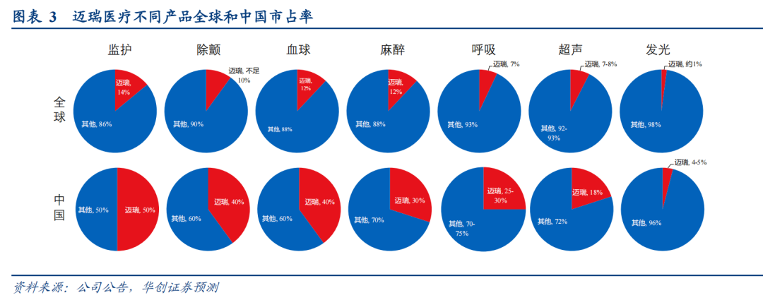 三季度因集采政策股价跌去40%的“器械一哥”迈瑞医疗,如今又重新回到市场资金关注的“舞台中央”。 遭遇如此剧烈的波动,迈瑞医疗,到底是否存在长期投资的价值?10月份,A股迎来巨量解禁,解禁市值高达4800亿,其中解禁规模最大的公司为是国内“器械一哥”迈瑞医疗。 根据计划,迈瑞医疗在10月16日的解禁股数将达7.17亿股,占总股本的比例为58.9%,预计解禁市值高达2761.75亿元。此次解禁共涉及四位股东,分别为Smartco Development Limited、Magnifice(HK) Limited、珠海睿隆管理咨询合伙企业和珠海睿福投资咨询合伙企业。其中前两家股东合计持有迈瑞医疗51.33%的股份,分别由公司董事长李西廷、董事徐航控制,减持压力相对较小。也就是说,真正有减持压力的股份占比,只有7.57%。在当下的市场行情以机构抱团为主导的背景下,机构调研的热度往往被一部分市场投资者认为是股价的风向标。 数据宝统计显示,在9月29日至10月12日期间A股约有108家上市公司被机构调研,其中有28家公司获20家以上机构扎堆调研。其中迈瑞医疗最受市场关注,近期解禁丝毫没有影响到机构对于公司的兴趣,参与调研的机构达到497家。迈瑞医疗目前有三条支柱业务线,包括生命信息与支持、体外诊断以及医学影像。据2020年营收结构数据显示,生命信息与支持为公司收入最大业务,占总营收比为47.12%,目前全球主要竞争对手为飞利浦、GE等;其次第二大收入业务为体外诊断,占总营收比为31%;最后为医学影像,收入占比为20.9%,目前主要竞争对手为GE、飞利浦、东芝、联影等。从2016-2021H1期间的收入增速看,迈瑞的三大支柱业务整体维持了较高增速,其中生命信息与支持业务近五年的复合增长率为29%,体外诊断近五年的复合增长率为23%,医学影像影响复合增长率为16%。但明眼人都看得出来,生命信息与支持业务受到新冠疫情带动,2020年出现了爆发式的增长才得以拉高了近几年的增速平均值,否则增速将降至20%以下。另外,从股东回报率指标看,迈瑞的ROE(摊薄)近五年平均维持30%左右,将非运营用现金扣除会更高,也是相当出色。2、国内多细分器械领域领头羊,海外市场占有率突破空间较大据华创证券测算,迈瑞医疗目前有超过20个医械产品品类,在国内大部分处于领头羊的地位,但在海外的市场占有率都相对较低。2020年,在国内市场,公司监护仪、除颤仪、呼吸机、灯床塔、输注泵、生化分析等产品的市占率均为第一,麻醉机、血球分析排名第二,超声排名第三,化学发光排名第五;尽管在国内名前茅,但迈瑞个细分在全球的占有率仍然不高,如迈瑞的监护仪在中国市占率约50%,全球市占率仅约14%;血球在中国市占率约40%,全球市占率仅约12%;超声在中国市占率约18%,在全球市占率仅约7%-8%。而从疫情爆发前的2019年迈瑞医疗的海内外收入结构看,国内收入仍然占据相当大的一部分(57.6%),以欧洲、美国两大医疗市场的营收仍然较小,证明公司在出海方面仍有很大施展空间,或许到达75%以上才能平滑集采带来的市场扰动。 近年迈瑞也在积极地布局新兴业务,以期培育出除原本三大支柱业务外的第四、第五条新的增长曲线。 从2020年年报来看,公司提到的六大新兴业务包括微创外科、宠物医疗、急救设备AED、超声-超高端彩超、分子诊断、骨科介入耗材,其中微创外科、宠物医疗、急救设备AED已经形成一定规模,有望在未来3年内给公司带来各10亿级别以上的营收。● 微创外科:公司定义的微创外科包括超声刀、能量平台和配套器械,并以腔镜为突破口,包括高清内镜、4K内镜以及即将推出的荧光内镜,相关行业增速较快,约20%。2020年迈瑞该板块的收入为2亿左右,2024年销售目标是2亿美元。● 兽用医疗器械:这个板块也是最有望成为迈瑞第四增长曲线的领域,全球60-70亿美元的市场规模并且正快速扩容,由于迈瑞在人用器械有基础,兽用调整一下就能卖且不需要注册,也不受政策扰动。迈瑞2020年动物医疗收入约为3亿人民币,2024年业务目标为2亿美元。● AED:据不完全统计,在中国迈瑞的AED已经在多种场合挽救了66个病人。2019年以来AED销售形势良好,办公楼、酒店、地铁等公共场所都在部署,2020年规模约2亿元(占增量市场的50%),增长动力充足。展望至2025年,迈瑞收入有望突破500亿元,测算2021-2025年期间复合增速超过20%。有机构预测500亿营收的拆分为:成熟业务、化学发光、微创外科、动物医疗、AED、骨科、分子诊断收入分别有望达到394亿、90亿、20亿、20亿、15亿、10亿和3亿元。以20%的业绩复合增速,市场大致的估值预期在当年动态市盈率的55-60倍左右,给予了一定溢价。 迈瑞自7月以来的回调主要受到医疗设备、体外诊断领域的政策扰动,医疗设备的谈判利空已经被证伪,大家当前比较担心的主要是三大支柱业务中未来增速最高的IVD板块的化学发光部分。 以本次声势极大的安徽化学发光集采结果显示,以乙肝两对半为例,医药收费价格大概是100元,企业的终端挂网价在46元左右,而经历安徽集采之后中标价至25元左右。以大部分厂商出厂价大概是挂网价的40-50%的情况看,本次集采降价相对温和,对国产出厂价的影响十分有限。 从中选结果来看,尽管国产企业入围产品不多,除了安图和透景外其他大部分厂商都紧紧抓住了机会,迈瑞医疗和新产业各自均中标了14项,全场并列第二,仅次于外资雅培。至于市场担心未来安徽市场的集采成果将推行