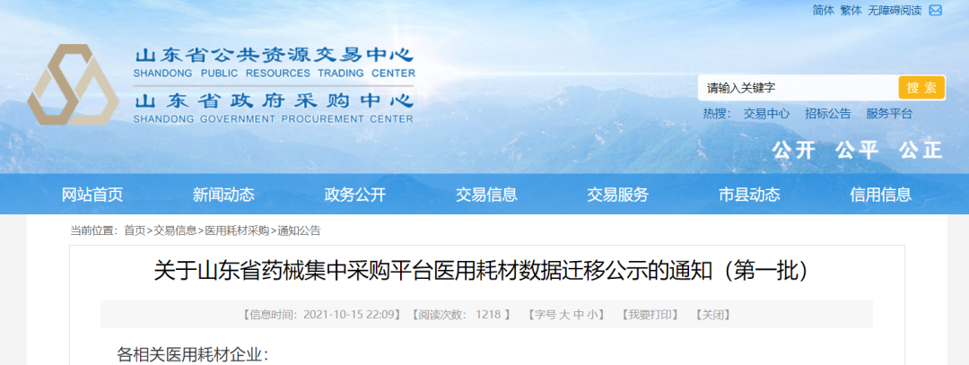 并且,除了河北省之外,就在前天(10月15日)山东省政府采购中心也发布了一则通知,第一批山东省药械集中采购平台医用耗材数据迁移也开始了。