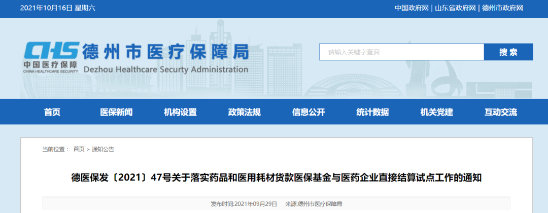 并且这一方案也很快得以落地,就在上个月29日,山东省德州市医保局表示,正式开始启动药品和医用耗材货款医保基金与医药企业直接结算工作。