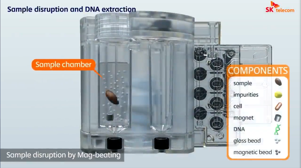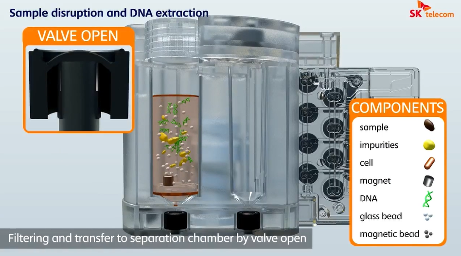 文章来源:IVD从业者网 | 作者:锁炎 | 韩国SK集团此前推出的FastCheckMolecular Dx POCT system也是一款非常不错的分子POCT产品,SK集团韩国最大的移动通讯运营商,其医疗保健业务,主要包括个人医疗、智能医院解决方案、体外诊断设备3大战略领域。 据生物探索2015年的文章显示,在诊断设备方面,SKT投资NanoEnTek、西安天隆科技公司,与分子监测公司Seegene建立战略合作,目前推出FREND产品,该产品可以透过一滴血就能监测癌症、心脏病等疾病。 今天给大家剖析的是一款基于微流控试剂卡盒的分子POCT产品—FastCheckMolecular Dx POCT system。 如图所述,这套系统有检测仪器,试剂卡盒和采样管三部分组成。 整个检测过程包含6个步骤: 1. 样本裂解 2. 杂质过滤 3. 核酸吸附纯化 4. 核酸洗脱 5. 扩增体系配置 6. PCR扩增及检测 1 样本裂解 样本仓中预置了玻璃珠和磁珠,样本加入样本仓之后,在机器磁场的作用下,高速运动的磁珠和玻璃珠、样本之间产生撞击力,进而对加入样本仓中的样本、细胞及其他杂志进行裂解。 2 杂质过滤 在进行完第一步之后,样本完成裂解,此时底部阀门打开,在力的作用下,含有核酸的液体被转移到第二个舱室,而蛋白质、脂质等杂质和玻璃珠在底部纳米薄膜的过滤下,留在了第一个舱室内。 3 核酸吸附纯化 核酸吸附纯化过程:纳米磁珠与核酸结合 第三步是将第三个舱室中的含有高亲和力的纳米磁珠与第二舱室中的液体进行混合,在力的作用下,磁珠吸附核酸,形成结合体,同时加以磁场,聚集结合体,从第三舱室中排出废液,完成第一次核酸纯化过程。然后更换buffer进行第二次纯化过程,去除杂质。 4 核酸洗脱 第四步是注入核酸洗脱液,将纯化后的核酸从磁珠上洗脱下来,再加以磁场力的作用,去除磁珠,同时将含有核酸检测的液体转移至预置有冻干试剂的试剂管中。 5 扩增体系配置 提取好的核酸再力的作用下先进入预置有冻干试剂的试剂管中溶解PCR反应所需要的冻干原料,完成体系配置过程,最后被注入试剂盒尾部PCR反应管内。 6 扩增及检测 PCR扩增及检测过程:注入PCR反应管的反应液在温控系统和光学系统的作用下完成PCR检测并报告检测结果。 从这款产品的设计来看,单份标本能够最后分为四个反应室进行,再配合荧光通道,能够完成多重靶标检测,是一种非常不错的技术解决方案。 参考资料:SKtelecom官网,视频来自互联网等,如涉及侵权,请联系删除。 |