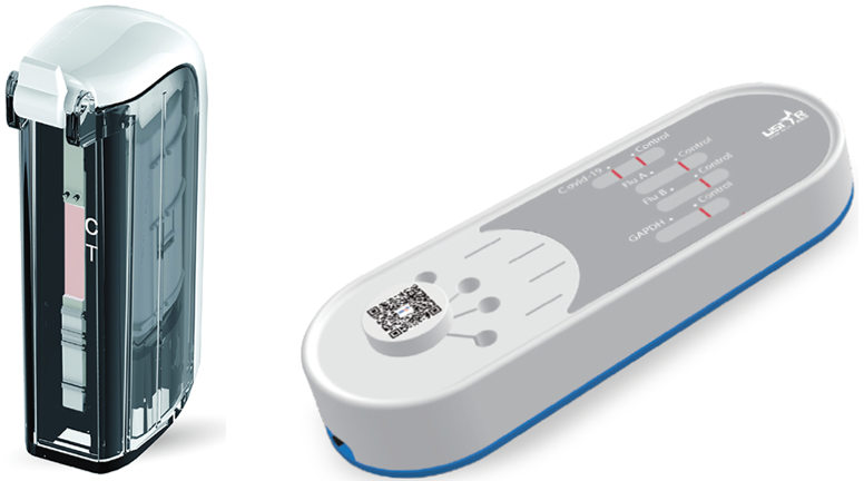 优思达的这两款产品是核酸恒温扩增与免疫层析技术的结合,检测结果肉眼即可判读。其中,左边的小装置仅用于核酸扩增产物的层析检测,核酸扩增过程需在外部进行;而右边小装置则是升级版,集合了核酸恒温扩增和免疫层析检测过程,且通过内部微流控设置实现病原体的多联检测。操作简便性可见一斑,其中对于扩增产物的防污染设计更是值得大家关注。