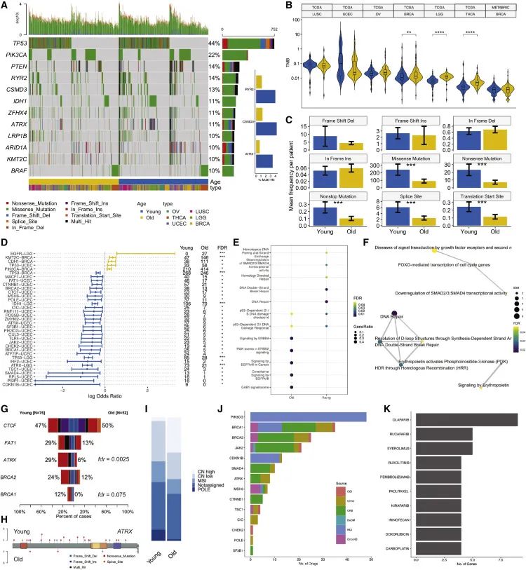 " 近日,美国威尔康奈尔医学院的研究人员对癌症基因组图谱(TCGA)队列进行了泛癌系统分析,以阐明年轻肿瘤患者和老年肿瘤患者之间的的分子特征是否存在差异,并发现年轻个体的肿瘤具有可用于设计新疗法的独特特征。 衰老是指生理功能随时间下降,导至患病风险增加,包括癌症。 癌症,一般都是在老年人中诊断出来。年龄较大是癌症的一个重要危险因素,但近年来,年轻人的癌症发病率正在以惊人的速度增加。1,2,3 在美国,根据最近的一份报告,在49岁以下的男性和女性中,有1/29和1/17的概率会罹患癌症。4 乳腺癌,结直肠癌,生殖道肿瘤,皮肤癌,软组织肿瘤和甲状腺癌在这个年龄阶段最常见。 但目前,我们对癌症年龄相关的病因学和生物学差异了解知之甚少。
