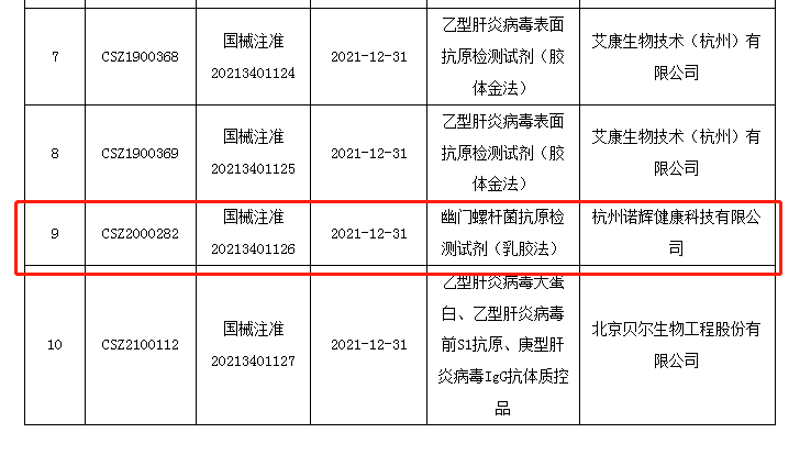 1月6日,国家药品监督管理局主办网站发布信息显示,批准幽门螺杆菌抗原检测试剂(乳胶法)的三类医疗器械注册申请,这是我国首个适用于“消费者自测”的幽门螺杆菌(Hp)检测产品。
