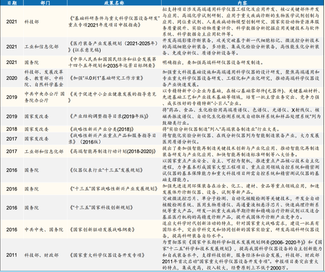 正如世界上没有两片一摸一样的叶子,也不可能有完全相同的市场环境。尽管还有多种现实原因掣肘,但国产替代意识觉醒之下,高端仪器的“风”确实是吹起来了。 2011年,科技部、财政部首次启动“国家重大科学仪器设备开发专项”,以加大对科学仪器领域的政策支持力度。仅2011年专项经费支持就达7.7亿元。 上个月,《中华人民共和国主席令(第一〇三号)》发布,修订通过《中华人民共和国科学技术进步法》,这是时隔14年后对该法的再次修订,于此之中,科学仪器被提及6次,同时提出大力推进采购国产仪器。 地方上,去年12月,《上海市高端装备产业发展“十四五”规划》指出,到2025年,上海高端装备产业重点细分领域从国际“跟跑”“并跑”向“领跑”迈进,上海全市高端装备产业工业产值突破7000亿元。 除资金支持外,建立国产仪器应用中心、建立仪器测评中心、举办高端用户与国产企业供需对接会、成立中国科学仪器自主创新应用示范基地……这些举措,国家和地方一直都在持续推进中。 可见,从国家领导人到国家部委再到地方政府,都将科学仪器放在了重要位置。用雷军的话说,高端仪器领域“撞到了风口”,这次能飞起来吗? 越是在起风时,就越要清醒、冷静。 外企在中国的打法越来越灵活,国产替代背景下,越来越多的外企选择在国内建厂,以规避某些限制性要求。未来,放弃部分利润,以降价策略应对国产的崛起或许也会是策略之一。 总之,大厦之成,非一日之功。要实现核心技术的突破甚至领先,需要基础研究的生态共建,而科研技术是全球化的公平比拼! 参考资料: 1、近九成科学仪器依赖进口,“国货”如何突围——科技日报 2、中金 “大国重器”系列:分析仪器,孰能破局 3、【国金研究】医药行业供应链系列专题(二):东风已至,国产科学仪器崛起正当时 |