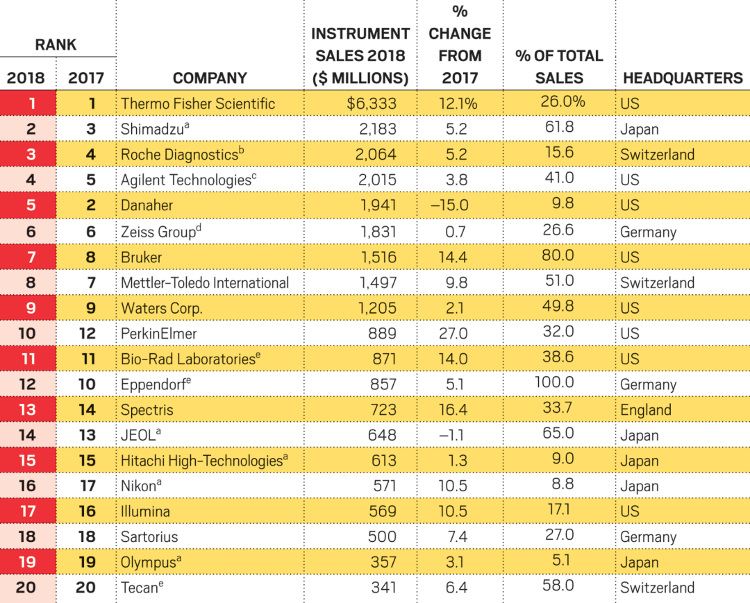 ▲2020年全球仪器公司市值TOP20排行榜,仪器信息网整理 以全球质谱仪市场为例,据SDI的数据,市场主要参与者沃特世、丹纳赫、布鲁克、安捷伦、赛默飞、岛津等公司占据了近90%的市场份额,其他企业市场空间非常有限。 发展路线方面,由于涉及学科广、类型多,多需要复合型人才,这决定了该产业的发展路径可能更适合走并购路线。 比如行业两大龙头赛默飞世尔和丹纳赫,均是借由资本市场的助力,收购细分领域技术领先的小企业,才逐步发展成行业巨擘: