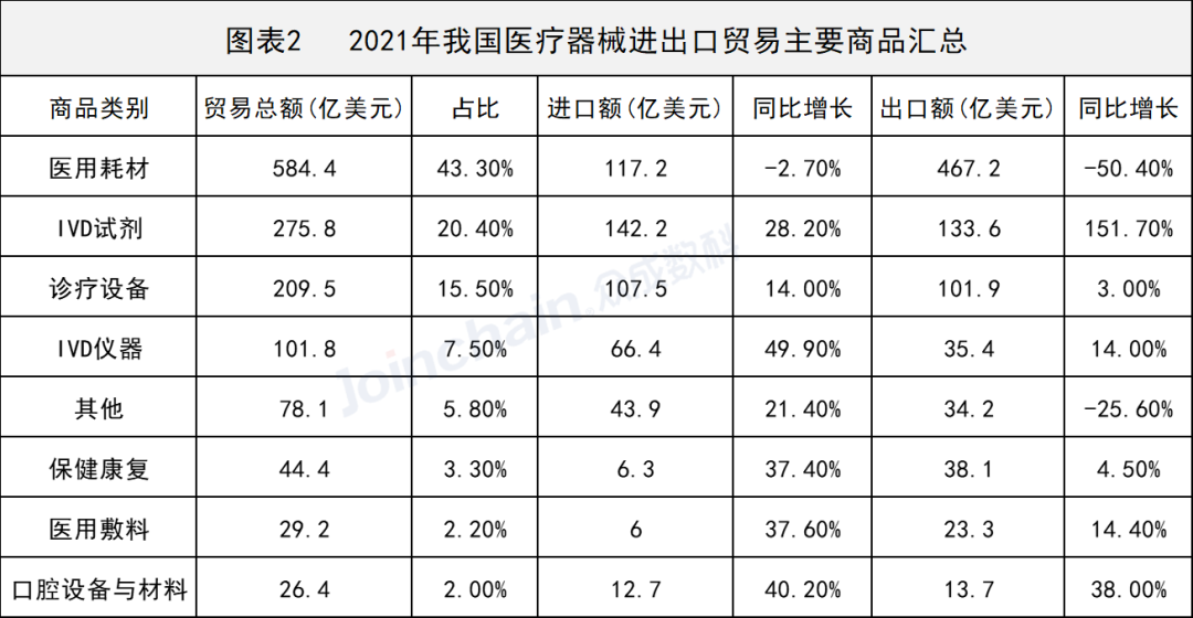 进出口数据|2021年我国医疗器械进出口贸易额达1349亿美元,IVD试剂进出口增速居首