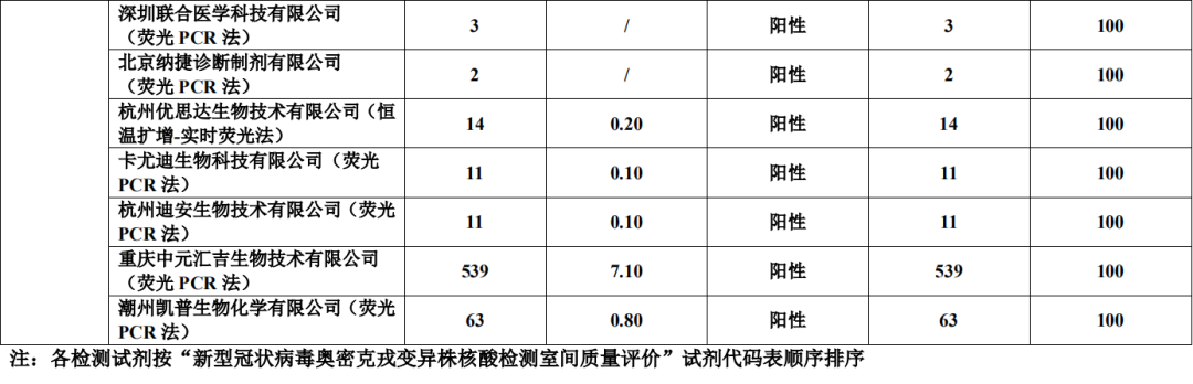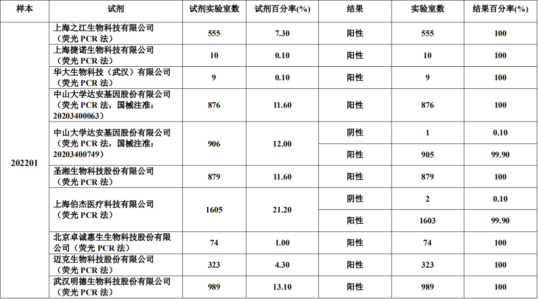 2022 年全国新型冠状病毒奥密克戎变异株核酸检测室间质评活动共有来自 31 个省(市、自治区)的共 7668 家实验室参加(因疫情物流管控原因,实际参加7608家),包括疾病预防控制中心、二级或三级公立医疗机构(含综合医院、专科医疗机构、妇幼保健机构)、独立医学实验室、海关所属国际旅行卫生保健中心等。本次质评,共计收到 7568 家实验室的有效结果,其中 EQA/PT 成绩合格的实验室7540 家(99.63%,7540/7568),不合格实验室 28 家(0.37%,28/7568)。另外《结果报告》还披露了不同厂家试剂检测的结果符合率。