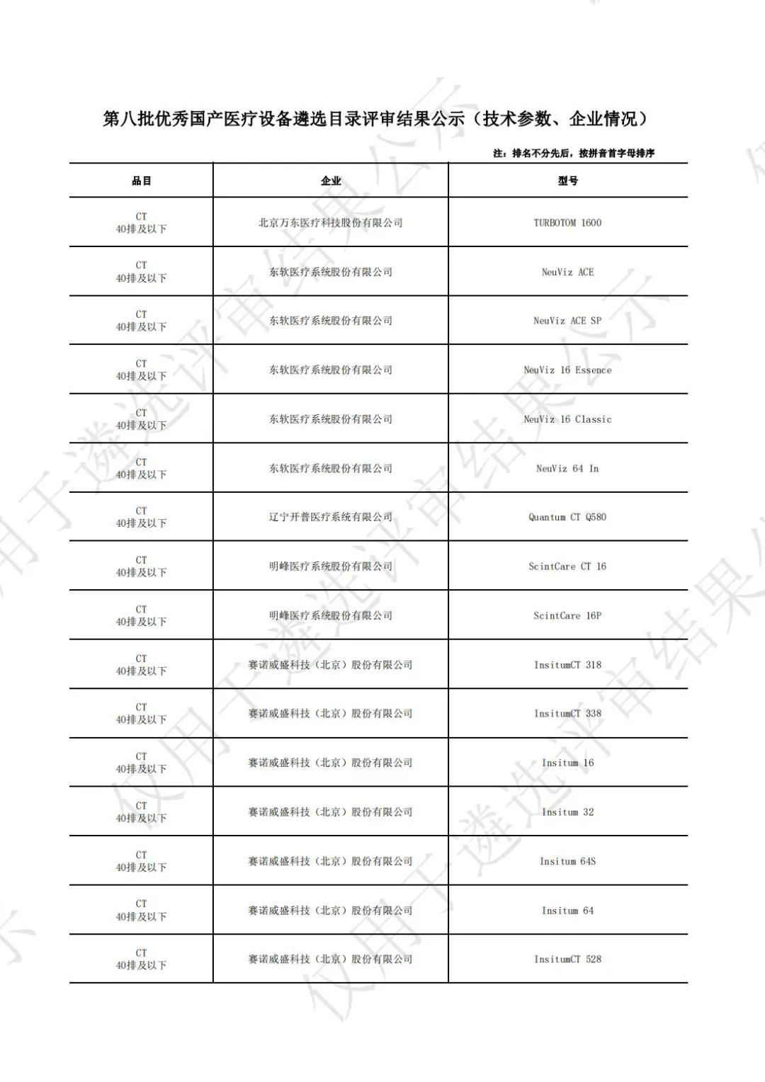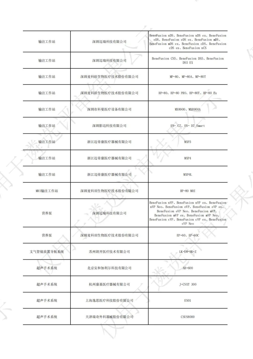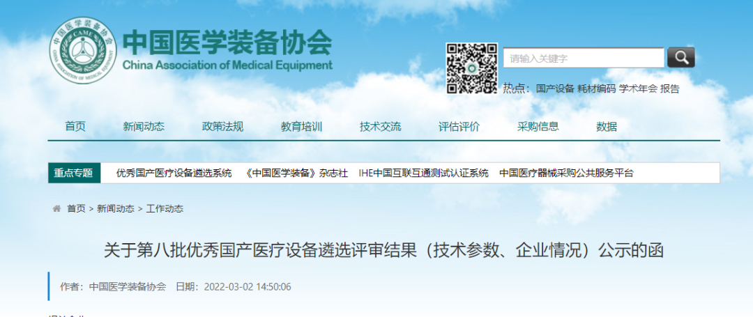 3月2日,中国医学装备协会发布了《关于第八批优秀国产医疗设备遴选评审结果(技术参数、企业情况)公示的函》(以下简称公示函)。 据公示函了解,第八批优秀国产医疗设备产品遴选已完成部分品目技术参数和企业情况的评审。现在将技术参数和企业情况通过的产品进行公示(详见文末),下一步将对通过评审的产品进行临床应用评价。而未通过的企业也可在公示期内进行查询申诉。 公示时间:2022年3月2日至2021年3月10日。如有质疑(申诉),请在公示期内发送查询申诉函,发到邮箱came_lx@163.com。 第八批优秀国产医疗设备公示的品目包括:呼吸神经肌肉刺激仪、X射线骨龄仪、左心耳封堵器、腔静脉滤器、超声手术刀系统、智能采血系统、CT、MR、呼吸机、麻醉机、血透设备、特动蛋白仪、血细胞分析仪、尿液工作站等34种。 本次通过初步遴选的产品来自东软、联影、明峰、海尔、万东、赛诺威盛、迈瑞、安科、苏州朗润、蓝韵生物、帝迈、禾柏、迪瑞、优利特等优秀国产械企。 |