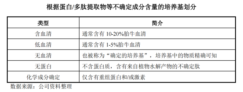 据沙利文咨询研究显示,2020年国内生物制药培养基市场规模为44亿元,预计2025年将达到84亿元,2020-2025年的年复合增长率将达到29%。放眼全球,全球细胞培养基领域的年销售额已达到60-70亿美金,中国市场的销售额连其中1/10都未达到;有机构预测,2030年中国将会占到全球市场份额的一半以上,成长空间巨大。中国培养基市场,过去一直被进口品牌垄断,三大厂商即赛默飞、丹纳赫和默克占据了主要市场份额,尤其是在无血清培养基配方和工艺技术领域长期被国外供应商垄断,这在很大程度上影响了我国生物制品发展的自主可控。培养基根据蛋白/多肽提取物等不确定成分的含量,可划分为含血清、低血清、无血清、无蛋白、化学成分确定等培养基类型,由前往后化学成分的确定性递增;其中,无血清培养基又因免了动物血清造成的病毒、支原体等污染的风险被称为“确定的培养基”,而无血清/化学成分确定培养基,拥有特异性高等优点,为细胞提供更优的生长条件,支持细胞高密度生长,提高细胞表达量。
