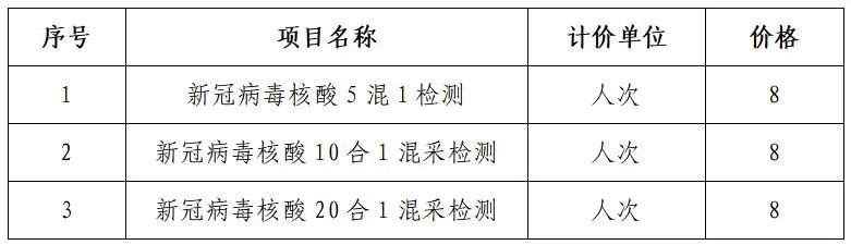 二、公立医疗机构按照卫生健康部门技术规范进行的新型冠状病毒核酸混合检测,不区分样本数量,最高价格为6元/人次,不得另外收取检测试剂等其他费用。