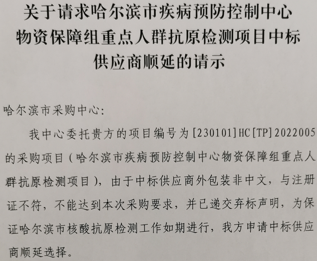 近日,中国政府采购网公布的黑龙江省会城市哈尔滨疾控新冠抗原政府采购却出现新冠抗原中标价回调的情况。