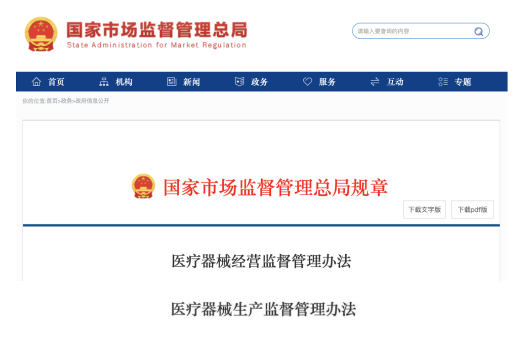 日前,国家市场监督管理总局发布两份重磅文件,分别是《医疗器械生产监督管理办法》(以下简称《生产办法》)《医疗器械经营监督管理办法》(以下简称(经营办法))。
