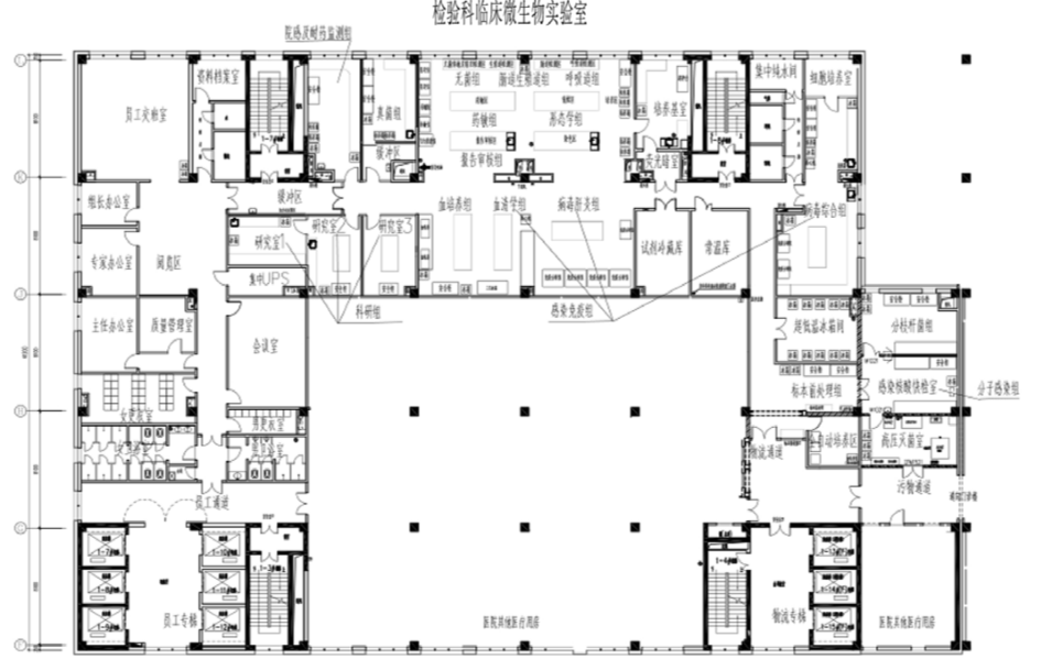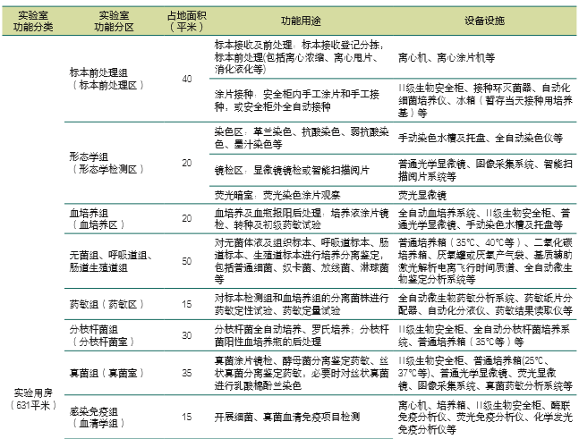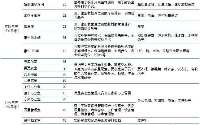 图1 临床微生物实验室平面图 表2 临床微生物实验室功能分类、功能分区、功能用途、设备设施对照一览表