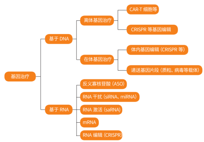 基因是控制性状的基本遗传单位,除某些病毒的基因由RNA构成以外,多数生物的基因由DNA构成有机体的大多数疾病是由基因与环境相互作用而引发的,通过基因疗法可以从本质上治愈或缓解多种疾病,基因治疗被认为是医学和药学领域的一次革命,广义的基因治疗药物包括基于DNA修饰的DNA药物(例如基于病毒载体的体内基因治疗药物、体外基因治疗药物、裸质粒药物等)与RNA药物(例如反义寡核苷酸药物、siRNA药物和mRNA基因治疗等);狭义的基因治疗药物主要包括包括质粒DNA药物、基于病毒载体的基因治疗药物、基于细菌载体的基因治疗药物、基因编辑系统和体外基因修饰的细胞治疗药物等。经过多年的曲折发展,基因治疗药物临床试验取得了鼓舞人心的成效,(不统计DNA疫苗和mRNA疫苗在内)目前已有三十多款基因治疗药物获批上市,随着越来越多的基因治疗产品的上市,以及基因治疗技术的快速发展,基因治疗即将迎来高速发展期。
