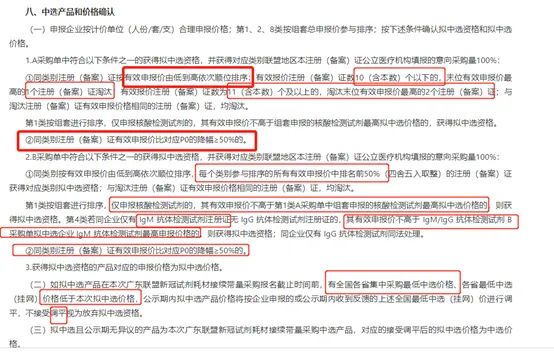 | 2、 医保定点社会办医疗机构、第三方检验机构、零售药店自愿参与马姑娘解析:采购主体相比去年而言,范围大大扩大。去年的公立医疗机构没有明确指出军队医疗机构必须参与,今年特意标注括号包含了此类机构,买方主体进一步扩大;另外,医保定点机构和零售药店自愿参与,这一点估计是针对自测抗原加上的条目,因为除了抗原,其他也不适用于零售,所以联盟中选也是为争夺联盟省份零售药店市场份额加码,集采认证是一个非常有影响力的东西,万一将来各个省医保局规定零售药店只能采购联盟中选产品呢,这也是很有可能的事情,因为本次带量采购不同以往淘汰率高,只要稍微愿意把价格降下来,中选几率还是很大的,所以这部分的市场份额不容忽视。而且文件后面还提到了医保定点社会办医疗机构和零售药店的采购量由供需双方按采购协议的约定执行,以及合同模板也考虑到了零售药店在内,所以说这方面平台是有考虑到将来零售药店走集采的一个巨大的需求的。 包括广东、陕西、山西、辽宁、黑龙江、江西、湖南、广西、海南、重庆、贵州、云南、甘肃、青海、宁夏、内蒙古、新疆、新疆建设兵团等(具体参与省份以报价通知为准) 马姑娘解析:如图所示,红色部分省份为参与联盟省份,多数集中在南部、北部,刚好中部很少省份参与,但也不排除将来,还会有新的省份继续加盟进来,去年就是项目执行到一半,又新增加了几个省份参与,就直接按中选价联动到省平台挂网。另外提醒一点,虽然三四月份全国都开展一轮的抗原集采挂网了,但也不影响这些省份继续参与广东联盟,项目是可以叠加的,当广东联盟中选了之后,这些联盟省份在省平台挂上中选产品,医疗机构可以先执行完约定采购量,优先选中选产品,也可以选其他挂网产品,这个看医疗机构自主选择了。最后说一句,可能联盟省份后面还会参与京津冀联盟,既然其他省有这么好的项目,直接联动过来多好,比自己省份开集采有效率多了。1、 带量采购周期原则上自中选结果实际执行日起至2023年5月25日。对企业的中选价格联盟地区内的医疗机构不得二次议价。2、 在本次采购周期执行前,签订采购协议,中选产品一律按新的中选价格执行。3、 采购周期内采购主体完成当年协议采购量,继续采购中选产品,中选企业按中选价格进行供应,直至采购周期届满。马姑娘解析:采购周期执行一年,这一年内按中选价供应联盟的医疗机构,价格不会再次议价降价,这也给生产企业增加了一定保障,稳定供应价格。但如果遇到国家重大政策调整,中选价格也很有可能要主动申请调价的,这两年的政策主旋律都是降价再降价,减轻人民负担,最好生产企业自觉自发的主动申请降价了 。1. 报价以注册证为单位,不区分规格型号,即一个注册证一个价格。核酸按套或人份报价,抗体抗原按人份,采样管按支,按最小使用单位报价,保留小数点后两位2.有效申报价应不高于表2所列对应类别的价格(以下简称P0),所以有效的报价不高于表2最高限价(简称P0)3. 第一类普通核酸按组套申报的,含核酸检测试剂、核酸提取(纯化)试剂、保存液、拭子的价格,不高于11.6,进申报核酸的,不高于6.4注意:核酸提取纯化试剂和含拭子的病毒采样管与核酸试剂组合提报第一类之后,不再重复参与第七类提取试剂和第八类采集器具的申报。4. 新冠抗原分为专业检测和自测,报价均不能高于7.95. 原文要点:7.第8类样本采集类医用耗材的申报价需按保存液和拭子的数量比例为1:1(1人份)进行组套报价,即样本采集类产品1人份的总申报价为1瓶保存液的申报价+1根拭子的申报价,若同组套内拭子报价高于保存液报价的为无效报价。(若保存液和拭子的数量比例为1:5或1:10,实际供应样本采集器具(含保存液和拭子)的总价格为1瓶保存液的价格加5根或10根拭子的价格。)分析:第八类采样管和拭子1:1报价,如果是单采的话这很好理解,总报价写1瓶保存液+1根拭子的总价格,备注写1瓶保存液多少钱,1根拭子多少钱;那如果保存液跟拭子是1:5和1:10,既然前面说了按注册证为单位申报价格,那一个采样管不管是里面配单根、10根、20根拭子,这个注册证也只能一个价格,报总价,并且是最低价的那个,报价小于等于1.9,所以这可能看企业选配哪种类型的拭子申报或者全部一个价申报6.原文要点:8.同竞争单元同企业同类型产品不同注册(备案)证申报价格须相同;若申报价格不同,仅最低申报价为有效报价,高于最低申报价的为无效报价。分析:同企业同个类型产品有多个注册证,申报产品为同一类别,仅最低申报价为有效报价,不能差异化报价,高于最低申报价的无效。这也避免了有些企业钻漏洞,差异化竞价,但马姑娘有个疑问,如果生产企业有两个病毒采样管,一个跟核酸组合申报了第一类,一个申报第八类,应该也不冲突,所以这也是一个漏洞,这也告诉企业要多注册几个同类的注册证。原文:符合申报资格的8类产品按不同的竞价方式形成拟中选结果,根据不同的竞价方式分为A采购单和B采购单。在同类别A/B采购单中符合报名资格的注册证仅参加A/B采购单的竞价。第1类按核酸检测试剂的采购量区分A/B单。第4类同企业同方法学IgM抗体检测试剂与IgG抗体检测试剂的采购量相加计算,同注册证IgM/IgG抗体检测试剂的采购量按乘以2计算,区分A/B单。各类别联盟地区历史采购量、广东省报量和A采购单另