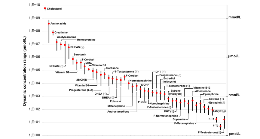 目前临床上主要使用化学发光法或免疫法检测雄性激素,但因类固醇激素在生物体内含量较低、结构相似、种类繁多,常规的化学发光法或免疫检测方法因检测系统灵敏度不够、交叉反应等会导至雄激素检测结果的不准确,可能会带来错误的临床诊疗决策。 液相色谱-串联质谱技术(LC-MS/MS)结合了液相色谱强大的分离能力和质谱检测的高灵敏度和特异性,检测的专属性更强,可解决既往类固醇激素检测方法存在的灵敏度低,检测阈值高的问题,有利于提高女性雄激素检测的可靠性!与传统的化学发光法或免疫学方法相比,LC-MS/MS具有以下的优势: 1、 特异性高。LC-MS/MS与化学发光法或免疫法在检测女性睾酮、硫酸脱氢表雄酮和皮质醇时的一致性不佳,尤其是在检测低浓度的雄性激素时,免疫法或化学发光法检测结果偏高,或会导至假阳性结果,影响临床决策!而LC-MS/MS不受特殊抗体或者发光试剂的限制,主要根据相对分子质量和电离情况等信息准确定量,更能反映体内雄激素的真实水平! 2、 灵敏度好。虽类固醇激素在体内的浓度水平高低不一,但LC-MS/MS检测的动态范围宽,可覆盖体内多种类固醇激素的浓度。目前使用LC-MS/MS检测类固醇激素,检测限可到达pg/mL,优于目前的检测方法! 图片来源于网络,若有侵权,联系删除 3、 通量高、成本低。LC-MS/MS可在一次实验中同时检测多个指标及其中间代谢产物,可更全面更系统反映女性体内类固醇激素代谢情况!相比于其他检测平台,LC-MS/MS在一次实验中获得多个类固醇激素的检测结果,其通量更高且检测成本相对较低! 临床检测结果的可靠性与临床诊断密切相关,可靠的诊断技术可有效避免临床误诊和减少医患纠纷。因LC-MS/MS技术具备高专属性,高准确度,低进样量,能同时测定复杂基质中的多种类固醇激素的优点,且检测结果与临床判断一致性更好,国外的临床内分泌与代谢杂志(JOURNAL OF CLINICAL ENDOCRINOLOGY & METABOLISM)在2013年也公开宣称,2015年起将不再接受非质谱法检测类固醇激素的文章!近年来,国家健康委临床检测中心也积极开展类固醇激素的正确度验证计划,并新增临床质谱方法分组,可见,LC-MS/MS技术或是未来临床实验室检测类固醇激素的趋势! 使用精准的工具对体内多种类固醇激素进行同时检测,更有效诠释类固醇激素的临床意义,也更有效地辅助诊断PCOS,造福于临床患者!上海睿康生物开发的基于液相色谱-串联质谱法的多囊卵巢综合征(PCOS)检测试剂盒(液相色谱-串联质谱法,沪闵械备20180497 号),搭配AUTOMAN样品自动化前处理装置,可为临床提供更快、更准确的类固醇激素检测结果,助力临床实现精准诊断! 上海睿康生物将持续专注于IVD质谱产品的开拓,致力于为临床检验提供更多更好的整体解决方案,助力精准检验时代的到来。 向下滑动查看 |