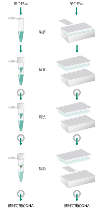 传统的第二代测序(NGS)样品制备方法可能是劳动密集型的,需要有经验的实验室人员仔细处理样品,以产生高效和可靠的测序结果。最近几年,有几种样品制备的方法得到了发展和调整,目的是提高速度、产量和可重复性。 其中许多方法也或多或少地与自动化兼容,提供了将人为错误和变异最小化的机会,并进一步提高不同批次样品之间的一致性。 1、NGS工作流程中对样品产量的需求 样品吞吐量是高通量测序实验室样品制备的一个关键因素,对生产力和成本效益有直接影响。 2、什么是样品吞吐量? 样品处理量是指同时(平行处理)或在特定时间范围内(每天、每周或更长时间)处理的样品数量。 NGS应用有不同的吞吐量要求。小规模/低通量的样品制备,如小型学术研究项目,通常可以通过人工处理来管理,而高通量的应用可能需要一定程度的自动化,取决于格式、规模和可用的设备选项。 各种规模的自动化加样设备可以实现NGS样品制备和NGS文库制备步骤的自动化,提供必要的速度、产量和可重复性,同时将人为错误的风险降到最低。在临床诊断等关键应用中,这种可靠性可以减少低质量数据的风险,以及对珍贵样本重复制备和测序的需要。 随着测序在临床应用中的加速采用,解决样本吞吐量这一工作流程中的潜在瓶颈的重要性正在增加,比如癌症诊断,早期和可靠的诊断能影响患者的长期预后。 基因组测序公司现在为基因测试提供公共和私人NGS服务。为了保持成本效益,这些公司需要保持高的样本吞吐量,每天处理大量的NGS样本,让他们的测序系统忙于搅动数据。 3、NGS样品预处理和文库预处理之间的区别 在NGS工作流程中的样品采集和测序之间,有两个关键阶段:样品制备和文库制备,每个阶段都包含一系列的步骤(图1)。 图1 | 从样品采集到测序和分析的典型NGS工作流程。样品制备方法可以有很大的不同,这取决于起始材料的来源、数量和质量。 NGS样品制备包括提取核酸的具体步骤,如从福尔马林固定、石蜡包埋(FFPE)人体组织样品中提取基因组DNA。例如,这些FFPE样本可能需要一个额外的步骤来修复受损的DNA,使其适合测序。 样品制备还可以包括一个扩增步骤,将核酸片段的数量增加到足以用于文库制备和测序仪器的水平。 文库制备从样品制备中获取纯化和扩增的核酸(DNA或RNA),并通过添加测序条形码和适配体将它们处理成最佳长度。在某些情况下,基于杂交或PCR的富集步骤通过富集感兴趣的特定区域进一步优化了测序库。 4、NGS样品制备的不同方法 有各种技术和方法可用于NGS的样品制备。这些方法包括从传统的基于溶液的方案,通过固相和膜化学,到基于磁珠的方法。 基于磁珠的方法可以说是固相萃取的一个子类别,但有许多化学方法是可能的,而且工作流程很独特,完全可以作为一个单独的类型来考虑。 这些方法中的每一种都遵循DNA(或RNA)分离的三个基本步骤: ➤ 裂解样品中的细胞,从温和的洗涤剂到积极的均质处理; ➤ 清除污染物,包括不需要的核酸和变性的蛋白质; ➤ 将核酸回收到适当的缓冲液中,用于任何下游的应用。 表1列出了这些技术和NGS样品预处理的几种方法。 表1 | NGS样品制备的技术和方法概述 5、基于溶液的样品制备方法 最著名和最广泛使用的基于溶液的核酸分离方法可能是苯酚-氯仿DNA提取。虽然这种方法使用了危险的化学品,但如果处理得当,它能以较低的成本获得高质量的DNA。这种方法在研究实验室中很常见,学生和博士后研究人员进行苯酚-氯仿提取是日常工作的一部分。 然而,这种方法对高通量应用并不那么适用。它需要仔细处理,并可能有苯酚(一种抑制剂)的携带。此外,尽管现代自动化加样设备相当复杂,但它们无法判断并实现样品间产量和纯度的平衡,而这是研究人员特别关注的一点。 因此,基于苯酚-氯仿的样品制备更适合于低通量、高产量的需要,而不是测序实验室所要求的高纯度或高通量。 另一种更适合自动化的基于溶液的方法涉及基于Phi29 DNA聚合酶的DNA扩增。这种方法使用一个管子、一个温度的格式忠实地扩增有限的样本,比如来自单细胞的样本。 高保真度的Phi29 DNA聚合酶在30℃下仍有活性,不需要热循环,并能从几pg的起始材料中产生微克的DNA。Phi29依赖于等温扩增,可用于环状(或环化)DNA模板和线性DNA模板(图2)。 图2 | 基于Phi29 DNA聚合酶的扩增原理。模板DNA在多个位置用随机六聚体做引物。然后Phi29 DNA聚合酶扩展引物,复制模板并置换任何下游的扩展引物。链式置换和随后的引物导至新模板呈指数级增长,用于等温扩增。 使用Phi29聚合酶的商业试剂盒,如Genomiphi™和TempliPhi™ DNA扩增试剂盒,是为使用简单的自动化友好方案来减少动手时间而设计的。这些类型的试剂盒还可以提供单管或多孔板预分配试剂的选择,使它们适合一系列的吞吐量需求和液体处理系统。 6、固相DNA分离 固相法提取DNA依赖于带正电的二氧化硅和带负电的DNA之间可靠的化学作用。一个典型的方案是使用混沌盐来破坏链间的氢键,促进核酸磷酸残基吸附在硅膜上。 这种二氧化硅与DNA的结合是可预测的,而且很容易调节,使碎片和潜在的污染物被洗掉,纯化的DNA以高产量和高纯度洗出(图3)。 与基于溶液的同等方法,苯酚-氯仿萃取相比,二氧化硅旋流柱需要更少的移液步骤,而且所有的步骤都可以在同一个容器中进行。这些特点使得使用二
