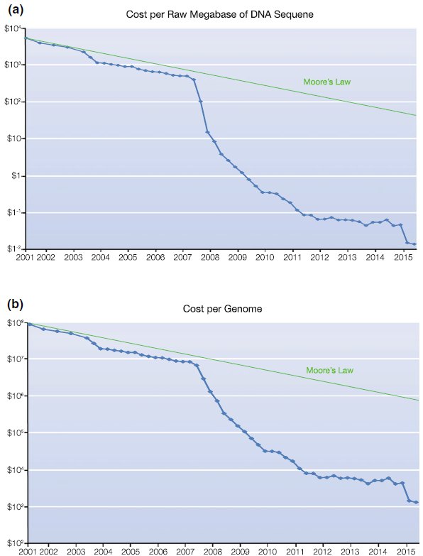 1 // 核酸和分子诊断 基本的分子生物学研究真正加速了遗传物质的诊断分析,作为一种「衍生」,这门特殊的学科被称为分子诊断。 在过去的几十年里,技术已经变得更快、更敏感、更可靠。由于硬件的改进和对病原体以及DNA和(m)RNA水平的遗传缺陷的了解的增加,越来越多的传统方法,如细胞和组织培养,以及免疫化学正在被分子技术所取代。 原位杂交也是如此,这是一种分子技术,越来越多地被更快速和敏感的技术(如测序)所取代。护理点测试和「个性化医疗」将变得越来越普遍,并且已经在热带疾病管理等方面小规模地实施。 用一系列不同的技术分析核酸,是任何形式的分子诊断的基础。1970年代,Frederick Sanger(剑桥大学)和Walter Gilbert和Allan Maxam(哈佛大学)开发了确定DNA分子中碱基顺序的方法(DNA序列分析或测序)。 PCR技术是在20世纪80年代和90年代之间推出的。在过去的十五年里,传统的PCR在许多应用中被实时PCR取代,使PCR的应用更快、更敏感、更可靠、更大规模,而在同一时期,微阵列也在发展。 目前,在美国NCBI的网站上可以找到无数生物体的序列,每天都有新的序列被添加到数据库中。 研究人员可以使用这些序列进行注释,这意味着他们可以寻找一个有趣的序列的含义,寻找与疾病的任何关系或功能,或确定进化关系。同样,人们可以检查PCR和其他引物/探针相关技术的引物和/或探针的有用性和特异性。 由于人类基因组计划,人类基因组的大部分(序列)于2001年被揭示。在随后的十年里,所有的人类基因都被描述出来。 如今,重点是检测(人类)基因的偏差、甲基化、突变、关键基因的变化及其在恶性肿瘤或其他遗传性疾病中的表达,并通过更快、更敏感的序列分析设备确定病原体的基序。 对一个物种的基因组进行测序使人们有机会揭示微生物的各种毒力和抗生素抗性基因,并在不同物种、部落或种族的进化关系中寻找答案,因此,多个基因组项目的结果构成了大规模序列测定的前沿阵地。 对小鼠、大鼠、斑马鱼和豚鼠等动物基因组的了解支持了动物试验中的实验设计,对结果的解释,以及随之而来的对人类的推断。 下一代测序技术允许对基因或突变进行快速和大规模分析。这可能非常有帮助,不仅可以追踪参与肿瘤发展和进展的基因,如乳腺癌或结肠癌,还可以检测(肿瘤特异性)目标,如新疗法的扩增基因或(变异)受体。 例如,可以搜索导至HIV对某些药物产生抗性的突变。 2、分子诊断技术 2 // 分子诊断技术 分子诊断中最重要的三种技术是杂交、扩增和测序。 2.1、杂交 杂交是指DNA或RNA中的序列可以通过具有互补序列的探针来识别。 尽管讨论了所有的技术革新,杂交仍然是许多(创新)技术的基础。这不仅适用于PCR,其基本原理是引物和探针的杂交,也适用于(下一代)测序、微阵列技术和其他高通量技术。 2.2、扩增 核酸的扩增(增加)是聚合酶链反应(PCR)、其他扩增技术以及许多类型的测序的基本原理。 几乎无法想象,1985年才首次描述的PCR及其应用是如何早短短的三十年内飞速发展到今天的。 1988年,随着热稳定的Taq-DNA聚合酶的出现,PCR第一次获得了重要的发展势头。自1991年以来,实时PCR(或qPCR)已经发展成为一种可靠的方法,可以在一个「封闭系统」中分析、识别和量化核酸。 qPCR方法,减少了污染风险,预示着这种方法在检验科中进入了一个新的指数增长阶段。 与此同时,人们也意识到分析和识别错误是非常重要的,有关PCR技术的质量控制和质量要求正越来越多地被纳入企业管理当中。 2.3、测序 更快、更可靠的测序方法已经出现,可以以相对较低的成本确定核酸序列。下一代测序(NGS)技术已经取代了传统的基于Sanger的方法,现在正在探索其作为分子诊断工具的意义。 随着每兆字节核算检测的成本不断降低和检测设备的小型化,我们开始获得了越来越多的数据,为了能够对这些超大数量的测序碱基对和相应的数据进行处理,越来越多的生物信息学工具也被开发了出来。 图1|从2011年到2016年,兆字节(a)和基因组(b)的测序成本都有所下降。 3 // 对未来的展望 为了解决许多科学和医学问题,分子诊断已经发展成为一门重要的学科。基因组的解开和新技术的出现将提供大量的数据。挑战将是如何管理这些大量的、有时是敏感的信息。生物信息学和强大的硬件/软件将变得至关重要。 另一个重要的关注点可能是诊断活动从专业实验室转移到普通医生和/或甚至消费者/病人本身。这些所谓的护理点测试(POC)必须经过校准和验证,以便由非技术人员使用。这对质量和安全方面提出了新的挑战,因为诊断测试需要满足质量要求,包括敏感性、特异性和安全性。 因此,监测这些测试的质量是非常重要的,而且还要监测对结果的正确解释。 |