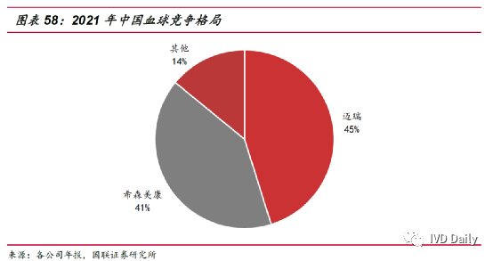 近期,我们的国产医械一哥迈瑞医疗又出圈了,成为了业内讨论的焦点话题。什么迈瑞在抗原进入2元时代入局意义为何?IVD产品线竞争超60%的迈瑞到访重庆中元生物用意为哪般?国产化学发光第一把交椅到底是迈瑞还是新产业?等等话题成为我们茶余饭后互相吹水的话题。 今天,我想和大家分享的都和以上无关~~~在IVD行业待久了,热门的细分领域我们往往如数家珍,如新冠带火了的分子诊断、被分子诊断抢了风头的化学发光,尤其是小发光、高端玩家玩的NGS,纳米孔测序技术、微流控等。是不是发现了少了点啥?没错,在中心实验室里的生化、血球、微生物我们这么些年都比较少提到了,生化姑且不说了,国产化做成功的一个IVD细分领域(实在也没什么好说的了);微生物受限于技术复杂种类繁多,布局该领域并据此为主阵营的凤毛麟角;血球这个市场关注的人不多,换句话说应该是之前关注的人不多。迈瑞2021年该细分领域的市场份额举一家之力就已经超过了进口,确定成为该领域的龙头老大(相较于化学发光似乎还没有定论,这里暂不分析),这一市场再次被很多企业盯上,特别是吃到新冠红利的企业。当然,盯上和付诸行动是两码事,毕竟谁的钱也不是大风刮来的。最近小编和几位公司市场人员聊天发现他们都曾或多或少的关注过这个血球市场,被老板立即否决也好,深入市场调研也罢,这都是一个企业横向发展,扩充产品线的必由之路。借此机会,想跟大家分享些该领域的市场情况。血细胞分析,是对人体血液的有形细胞成分进行分析——红细胞、白细胞、血小板及其衍生成分。血球仪由血细胞分析仪、试剂、校准品和质控品组成。根据对白细胞分类不同,血球可分为三分类和五分类血球仪。三分类即小细胞群(淋巴细胞)、中间细胞群(嗜酸细胞、嗜碱及单核)和大细胞群(中性粒细胞)。五分类即将白细胞再细分为五类:淋巴、单核、中性、嗜酸、嗜碱性细胞。除了血液检测本身,还可以通过不同技术平台间的融合,这里特指特定蛋白类免疫比浊类项目,如一些感染类项目,CRP、SAA 等组合检测,也就是一体机。 迈瑞作为血球领域的老大哥,一路走来,从自研到超越成为国内第一品牌,号称覆盖中国99%的医院,下面看看迈瑞血球相关产品:不难看出,迈瑞血球产品布局全面,上到流水线,下到普通三分类,形成了一个很好地技术路径迭代。5390系列相信很多检验科老师都不陌生,这台“神机”创造的神话,是我们学习的榜样。从2018年开始迈瑞血球产品总营收均超过20亿RMB,尤其是新冠以来,血球产品依旧保持快速增长。血球作为检验科最广泛应用的产品,已经发展相对成熟,迈瑞的血球产品是国产IVD产品中可以与国际巨头匹敌的产品之一,在国内客户群已深入高端客户,口碑良好。作为血球技术基础的库尔特原理,来自鼻祖贝克曼库尔特,现今该司产品一般医院较少见(比较可惜),可能因为外企的产品设计思路不太匹配国内操作者的使用习惯,另外就是更新太太太太慢了,这里不做过多赘述。2019年中国血球市场规模约为50亿元,近4 年来平均增速约为15%,受新冠疫情影响,增速2020年有所放缓,但是市场成熟稳定,预计未来还将维持稳定增速增长。据2022年4月份投资者关系活动内容显示,2020年下半年,迈瑞推出了以三维荧光、全自动末梢血、高速CRP检测一体机为标志技术的BC-7500 CRP血液细胞分析仪,该产品成为了迈瑞过去三十年以来首个在上市首年销售额破亿的新产品。2021年该产品的最终成绩为收入超过2.5亿元、装机超过千台,2020版复旦TOP100医院突破35家、TOP100妇幼儿童医院突破46家,成为了去年血球业务登顶国内市场的重要推力。今年以来,该产品在去年强势表现的基础上更进一步,一季度实现收入超过1亿元、装机400台,进一步巩固了国内血球第一的市场地位。预计该产品今年全年的收入和装机同比将继续实现高速增长,并延续高端突破的趋势。据此,迈瑞凭借强大的产品升级迭代计划,成功超过血球进口一哥希森美康!小编看来BC7500系列的成功来源于迈瑞深入的市场调研,特别是深入一线,了解国内检验科的血常规+CRP临床检测操作习惯,尤其是对于妇幼医院和门急诊,末梢血自动穿刺进样的设计无疑是解决了之前儿童末梢血没有统一操作标准这一痛点。正是这些细致入微的用户需求调研,促使BC7500系列的成功!去年迈瑞血球市场份额首度超过希森美康,做到了每两台血球就有一台来自迈瑞的成绩。随着国内疫情好转,在老龄化及检验需求的推动下;国产替代的红利;国内三胎开放以及人均医疗支出的逐年提高等利好因素下,国内涉足血球领域的厂家,该线应该保持一个稳步稳健的增长!