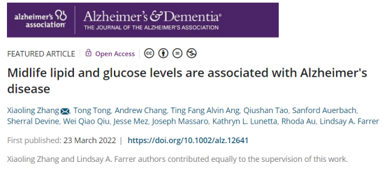[2]Zhang X, Tong T, Chang A, et al. Midlife lipid and glucose levels are associated with Alzheimer's disease. Alzheimers Dement. 2022 Mar 23. doi: 10.1002/alz.12641. Epub ahead of print. PMID: 35319157.