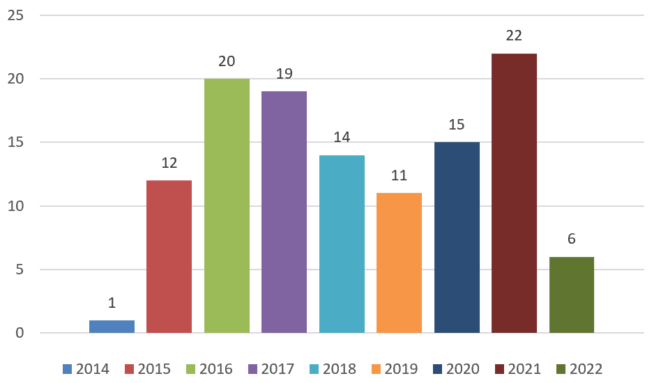 备注:产品年度按注册证编号前4位统计,有些产品的年度和获批年度不一致。