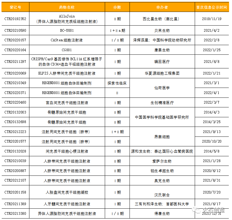 声明:本文为原创文章,欢迎个人转发分享,网站、公众号等转载需经授权。间充质干细胞和造血干细胞是目前临床研究和治疗应用最广泛的干细胞类型,诱导多能干细胞(iPSC)则因其不存在传统干细胞存在的伦理问题,而成为干细胞领域最具前景的干细胞类型之一。CAR-T疗法是当前免疫细胞治疗领域最炙手可热的领域,此外,TCR-T、TIL、NK等免疫细胞疗法也是当前免疫细胞疗法的主要类型。载体介导的基因疗法是目前基因治疗的主要形式,主要包括病毒载体和非病毒载体,广义的基因治疗还包括核酸药物、溶瘤病毒疗法等。本文将重点盘点国内以CAR-T为代表的免疫细胞疗法、以间充质干细胞为代表的干细胞疗法以及基因疗法等临床和注册情况。2004年至今,CDE共承办了62项干细胞药物申请,包括2项进口药品申请和60项国产药品申请,目前已有35项临床申请获得了临床批件或临床默示许可,另有8项申请终止了审批程序或不被批准。从药物注册分类来看,62项干细胞药物申请中共有42项1类新药申请,从2018年至今呈现逐年增长情况,2021年较上一年同比增速超120%,2022年前四个月已有10项1类干细胞药物申请,全年有望以超过50%的增速再创新高。 从干细胞类型来看,间充质干细胞(包括间充质祖细胞、间充质前体细胞等)共有47项,主要来源包括脐带、胎盘、宫血、脂肪、骨髓、牙髓等;胚胎干细胞、造血干细胞、前体细胞、肌母细胞等其他类型干细胞申请仅15项,包括泽辉生物的人胚干细胞产品CAStem、仙荷医学的支气管基底层细胞产品REGEND001,以及两款基因编辑的干细胞产品——康景生物的CG001和辑因医疗的CRISPR/Cas9 基因修饰BCL11A红系增强子的自体CD34+造血干祖细胞注射液。从临床试验来看,目前在中国临床试验注册中心登记开展的干细胞相关临床试验多达600余项,而在CDE药物临床试验登记与信息公示平台上登记开展的以药物上市为目的的临床则有20项,其中进度最快的仅推进至临床II期,离推进至上市仍有很长一段距离。 由研究者发起的干细胞临床研究方面,截至目前我国医学研究登记备案信息系统和卫健委公布的干细胞临床研究备案项目已超100项,批准设立的干细胞临床研究备案机构已达133家(含部队医院)。其中,上海交大附属仁济医院、中山大学附属第三医院分别以6项和5项干细胞临床研究备案项目位居前二,仁济医院备案项目涉及神经系统疾病、骨科疾病和风湿免疫性疾病,中山大学附三医院开展3项针对脊髓损伤的干细胞临床研究,南京大学附属鼓楼医院、郑大一附院、中南大学湘雅医院均以4项干细胞临床研究备案项目并列第三。截至2022年5月,全国已有累计131项免疫细胞疗法申请获得CDE受理,其中CAR-T疗法84项、TCR-T疗法8项、TIL疗法4项、CAR-NK疗法2项,其他类型免疫细胞疗法共33项。其中,共有75项免疫细胞治疗产品申请获得临床批件/临床默示许可,包括CAR-T疗法独(56项)、TCR-T疗法(3项)、CAR-NK疗法(1项)、其他免疫细胞治疗(15个)。 CAR-T领域,我国已上市的瑞基奥仑赛提交的新适应症(成人复发或难治性滤泡淋巴瘤)上市申请被纳入优先审评序列,其以明聚生物申报的用于成人复发难治性套细胞淋巴瘤的JWCAR029也别纳入突破性治疗药物程序。在此之前,已先一步上市的另一款CAR-T产品阿基仑赛的新适应症(复发或难治性惰性非霍奇金淋巴瘤)上市申请也率先被纳入突破性治疗药物程序。从靶点来看,除北恒生物的UCAR-T产品之外,CD19仍是当前扎堆最为严重的赛道,靶向CD19的CAR-T产品共有56个药物申请,其次为BCMA靶点的11个,CD20、CD30、CD70、TGF-β、GPC3、Claudin 18.2、B7-H3等其他单靶点CAR-T疗法。此外,另有4项双靶点CAR-T疗法申请获得CDE受理,分别为赛比曼的CD19/CD20和驯鹿医疗的CD19/CD22双靶点CAR-T疗法。 从临床试验情况来看,目前在CDE药物临床试验登记与信息公示平台上登记开展的CAR-T疗法临床试验共48项。其中,诺华的进口产品CTL019在国内开展的临床试验进度最快,已进入临床Ⅲ期,其他国产1类CAR-T疗法均未进展至Ⅲ期。 其他免疫细胞疗法方面,香雪旗下TAEST16001、TAEST1901和星汉德生物的SCG101三款TCR-T疗法已获得临床默示许可,君赛生物、智瓴生物和沙砾生物各有一款TIL疗法获得CDE受理,国健呈诺的靶向间皮素嵌合抗原受体NK细胞注射液是目前唯一一款进入临床阶段的CAR-NK疗法。截至2022年5月,国内共有27项基因疗法申请获得CDE受理,其中已有9项申请获得临床批件/临床默示许可,包括诺华的进口腺相关病毒(AAV)基因疗法OAV101注射液。同时,共有6项基因疗法临床试验在CDE药物临床试验登记与信息公示平台登记开展。从载体类型上看,AAV基因疗法(包括重组腺相关病毒)占据主导,共有17项。表3:国内IND阶段的基因治疗产品(除CAR-T) 另外,国内目前还有64个溶瘤病毒疗法获得CDE受理,其中已有30项获得临床批件/临床默示许可,主要以疱疹病毒和腺病毒为主要病毒类型,临床进展最快的为达博生物的重组人内皮抑素腺病毒注射液,已进入临床Ⅲ期。如需转载,请留言申请或邮件至contact@hsmap.com处理