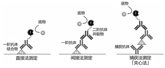 对于酶法检测,加入适当的酶底物。观察到的信号与样品中的抗原量成正比。两步之间的清洗确保只有特异性(高亲和力)的结合被保持下来,从而在最后一步引起信号。