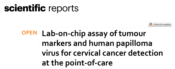 近日,来自英国的研究团队在杂志Scientific reports上发表了一篇题为“Lab-on-chip assay of tumour markers and human papilloma virus for cervical cancer detection at the point-of-care”的文章,研究团队使用针对HPV DNA和hTERT mRNA的优化设计引物,将LAMP技术转化为LoC设备,并测试其检测宫颈癌的能力。LoC上的LAMP技术已被应用于乳腺癌生物标记物的检测和包括2019冠状病毒疾病在内的传染病诊断。LoC设备基于CMOS技术和离子敏感场效应晶体管(ISFET)传感器,与环介导等温扩增(LAMP)分析相结合,用于扩增HPV DNA和人类端粒酶逆转录酶(hTERT)mRNA。分子靶点的分析灵敏度达到每个反应一个拷贝的mRNA标志物,实现了hTERT的100的检测限。在组织样本中,4/5的恶性组织和2/5的良性组织中存在HPV-16 DNA,1/5的恶性组织和1/5的良性组织中存在HPV-18 DNA。在所有恶性组织和非良性组织中均检测到hTERT mRNA,已证实的试点数据表明,在资源有限的情况下,大规模使用LoC进行宫颈癌筛查的潜力。