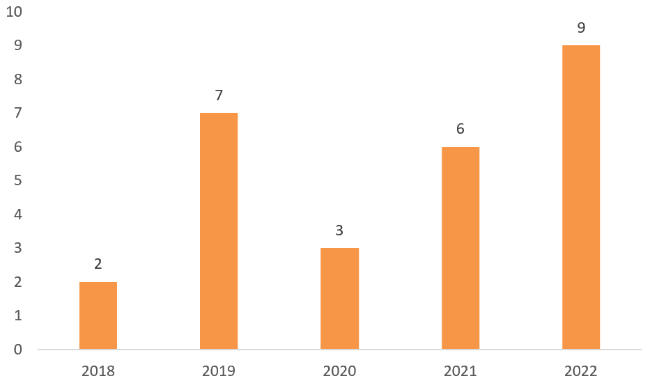 自2017年1月1日施行《医疗器械优先审批程序》以来,每年都有IVD产品走优先审批通道获证,近年来,其数量逐年增多,具体数据见图1。以笔者经历过的优先审批IVD经验来分析,可能是因为其适用范围广,适用于:治疗罕见病、恶性肿瘤、老年病、儿童专用、临床急需以及列入国家科技重大专项或重点研发计划等情形的IVD产品。对于新开发设计的IVD产品,走创新可能较难(或者不想走),但是其很大可能会满足优先审批的条件(适用疾病类型、适用人群年龄及临床急需等要求,较容易找到适用条款)。这和上次与大家分享的创新IVD产品逐年减少是相呼应的(【创新IVD都去哪儿了】公示42款,获证14款,6款进入临床,其余的“下落不明”)。