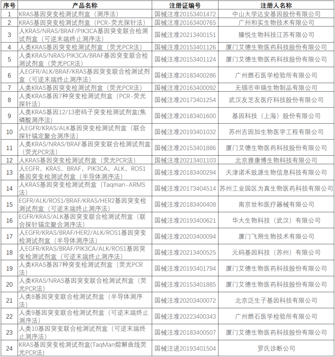 表 9 涉及ROS1基因的产品列表 NRAS NRAS基因是ras基因族的一个子成员,ras基因族主要表达ras蛋白和gap调控蛋白,该基因突变的NSCLC患者可能对 EGFR-TKI 原发性耐药。国内检测该基因的获证产品见表10。