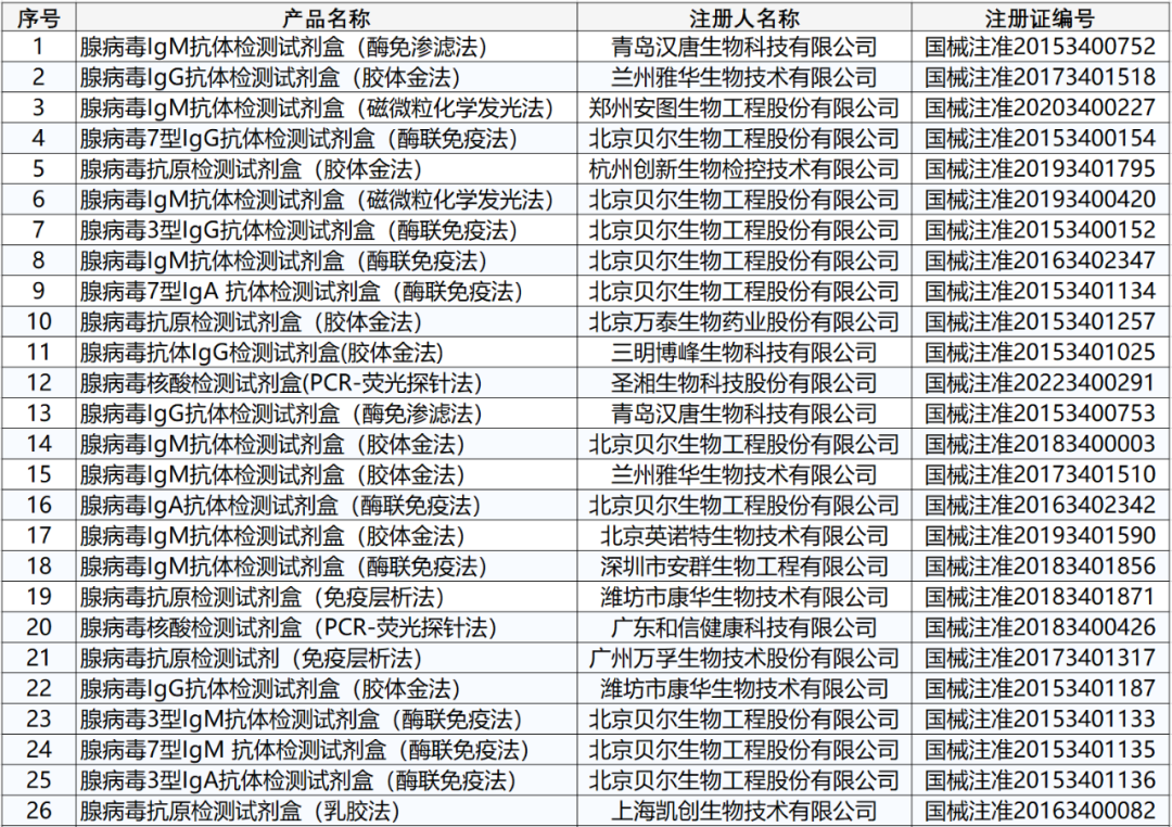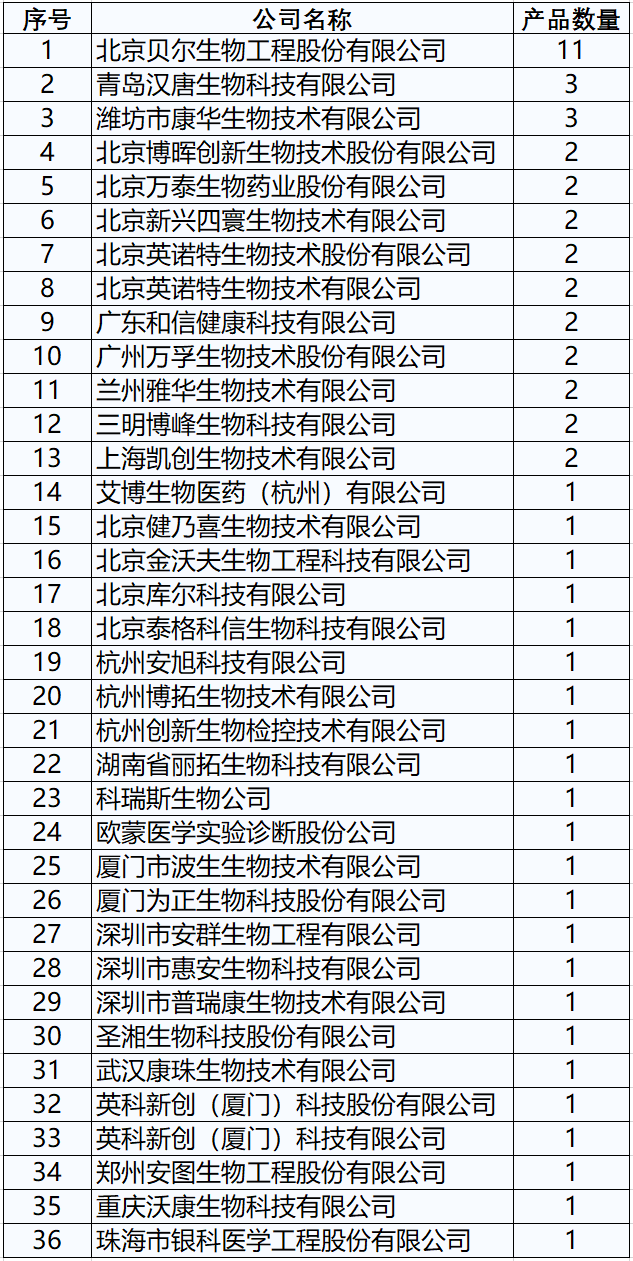 已上市IVD产品分析报告--腺病毒篇世界卫生组织23日数据,截至21日,已有12个国家报告不明病因的儿童急性肝炎,至少发生一例死亡。已接到至少169例不明病因儿童急性肝炎报告,其中114例在英国。美国、西班牙、以色列、丹麦、爱尔兰、荷兰、意大利、挪威、法国、罗马尼亚和比利时也报告出现病例。日本厚生劳动省25日发表消息称,日本国内也出现了首例可能患有这种急性肝炎的儿童。 世卫组织说,在至少74个病例中检出一种腺病毒,其中18例确认感染41型腺病毒;20个病例中检出新冠病毒;在19个病例中同时检测到腺病毒和新冠病毒。 世卫组织说,腺病毒是导至这些患者感染的一个假设原因,但不足以解释眼下的情况。 目前已知数十种腺病毒,其中许多关联感冒症状、发烧、喉咙痛等。41型腺病毒通常关联腹泻、呕吐、发热,还经常伴随呼吸症状。先前没有发现过免疫功能正常的儿童感染41型腺病毒后患肝炎的情况。(数据来源:人民日报4.27号报道) 近日,人民日报、新华社、综合央视新闻和中国新闻网等国内官媒都报道了相关信息。北京市卫生健康委也下发了《关于加强不明原因儿童肝炎病例救治的通知》,目的是提示相关医疗机构提高警觉,关注不明原因引起的儿童肝炎患者,如出现此类病例要尽快查明原因、加强救治(数据来源:中国青年报4.27号报道)。 虽然目前还未确定腺病毒和该类肝炎的关系,同时国内也还没有出现该类疑似病例,但是国内的相关医疗机构及人员应该要对其有所关注,下面整理了国内目前已获证的腺病毒相关产品及IVD产品应急审批流程,供大家交流参考。 腺病毒是一种人类常见的致病性微生物,NMPA已经批准了60款产品,涉及公司36家公司,境内公司34家,境外公司2家,产品数量排名前三的公司分别为:北京贝尔(11款产品),青岛汉唐(3款产品),潍坊市康华(3款产品)。详细数据见下表(有些含腺病毒的多种病毒联合检测的产品可能不在下面列表中)。