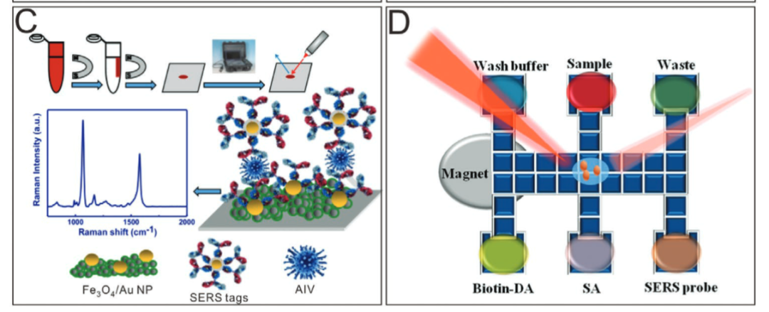 表面增强拉曼散射(SERS)作为一种无损、非接触式且可重复的快速检测技术,能够提供分子结构振动的指纹图谱信息,且谱峰窄不易发生重叠,在生化物质检测中具有显著优势,在核酸检测、病原微生物检测、肿瘤精准分子诊断等领域展现出良好的应用潜力。