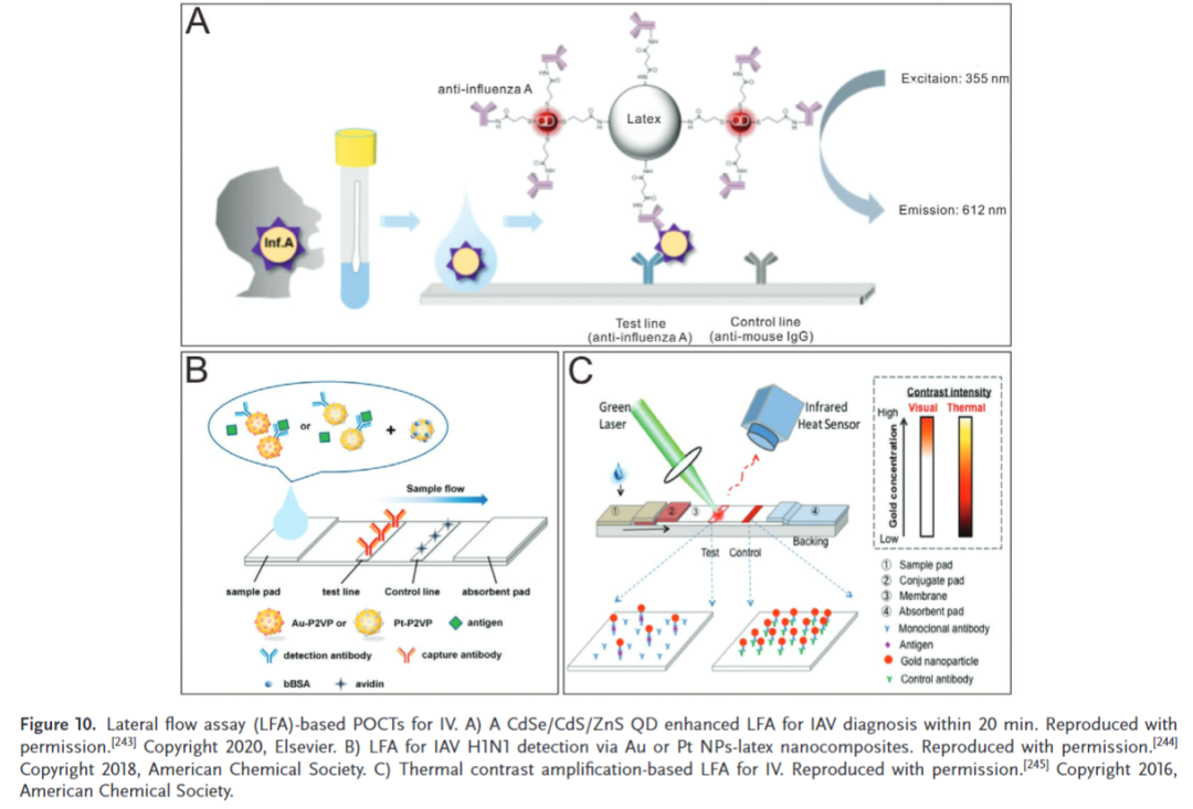 免疫层析技术(immunochromatography assay,ICA)始于20世纪60年代,是运用色谱层析和抗原抗体特异性结合的原理开发的一种快速检测方法。在层析过程中,标记物与待测样本形成复合物,通过毛细管虹吸作用被相应的配体捕获,在纤维素膜的检测线聚集显色进行定性或定量分析。ICA具有操作简便快捷、无需大型仪器设备、不依赖冷链运输等特点,是最早应用于病毒POCT的技术。