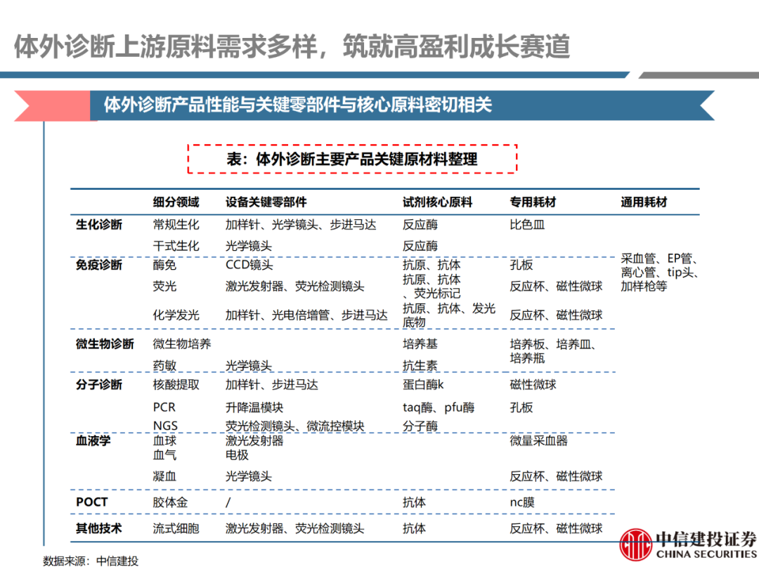 摘要: 体外诊断上游原料需求多样,多因素推动行业高增长。