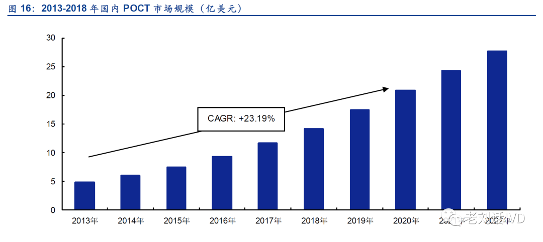 回归国内市场,因为中国的整体POCT渗透率相较于国外还是很小,所以POCT在国内的发展,远远超过全球,相较于生化免疫10%的CAGR,POCT 23%的CAGR毫无疑问是在中国未来的一颗掌上明珠。
