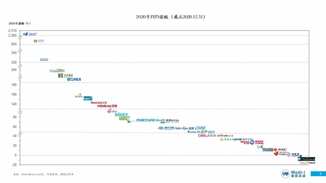 2020年涨幅TOP5:万泰生物、东方生物、新产业、硕世生物、达安基因(绿色标记)