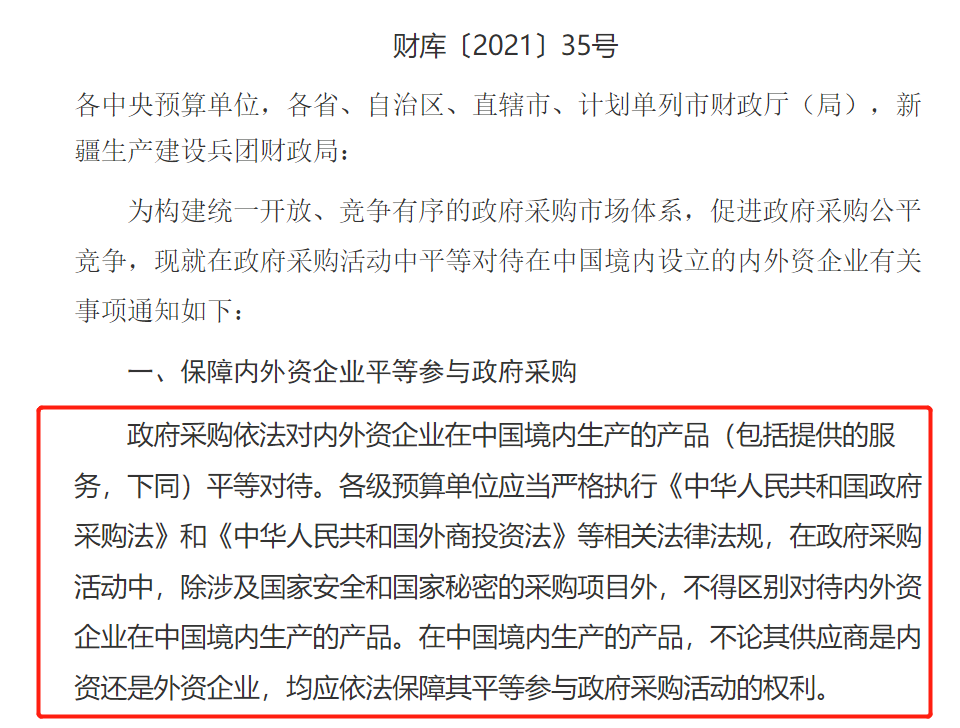 “国产”的政策定义 据相关政策,“国产”的范畴同样包括外资企业在中国境内生产的产品。 ▲财政部关于在政府采购活动中落实平等对待内外资企业有关政策的通知2021年10月,财政部发布《关于在政府采购活动中落实平等对待内外资企业有关政策的通知》,明确提出:政府采购依法对内外资企业在中国境内生产的产品(包括提供的服务,下同)平等对待。 同时,各级预算单位在政府采购活动中,不得在政府采购信息发布、供应商资格条件确定和资格审查、评审标准等方面,对内资企业或外商投资企业实行差别待遇或者歧视待遇,不得以所有制形式、组织形式、股权结构、投资者国别、产品品牌以及其他不合理的条件对供应商予以限定,保障内外资企业公平竞争。 总结下来,就是平等待遇,给予那些将工厂搬到中国来的企业。这也就能够解释,为什么在明确“不接受进口产品投标”的招标中,飞利浦能够中标了。 跨国医械企业的本土化动作 “国产替代”已成趋势,但不会“一刀切”。 越来越多的跨国械企开始在国内建厂,西门子医疗、GE医疗、飞利浦、美敦力等都曾表示不断推动“本土制造”,推动行业产业链的本土化。 西门子医疗:供应链本土化超80% 西门子医疗于1992年在上海开设了第一家生产基地,截至目前共有上海、无锡、深圳三个生产基地,供应链本土化已经超过了80%,基地生产的70%产品是销往全球各地。