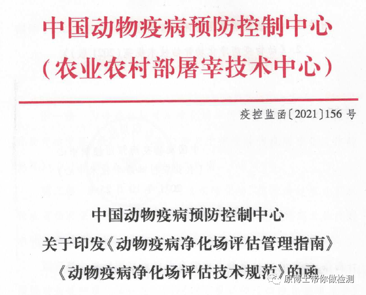 在中国动物疫病预防控制中心发布的《动物疫病净化场评估技术规范(2021 版)》:“本规范适用于种猪场、种鸡场、种牛场、奶牛场、种羊场、种公猪站、种公牛站和规模养殖场( 不含种畜禽场、奶畜场) 主要动物疫病净化效果的评估。包括:猪伪狂犬病、猪瘟、猪繁殖与呼吸综合征、口蹄疫、非洲猪瘟、禽白血病、鸡白痢、新城疫、高致病性禽流感、布鲁氏菌病、牛结核病净化应达到的标准,抽样方案及现场综合审查要点。”