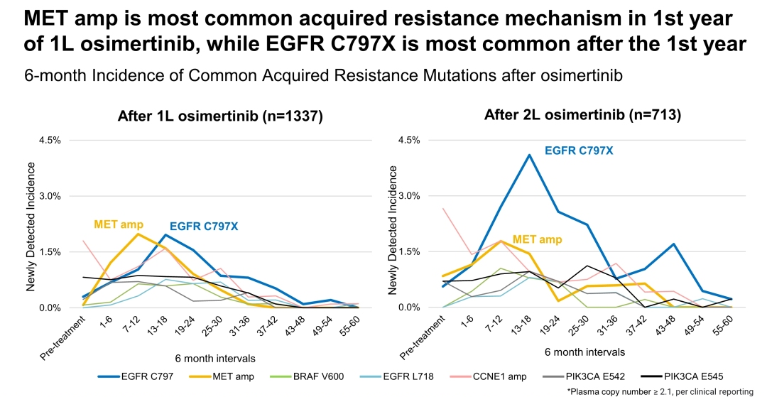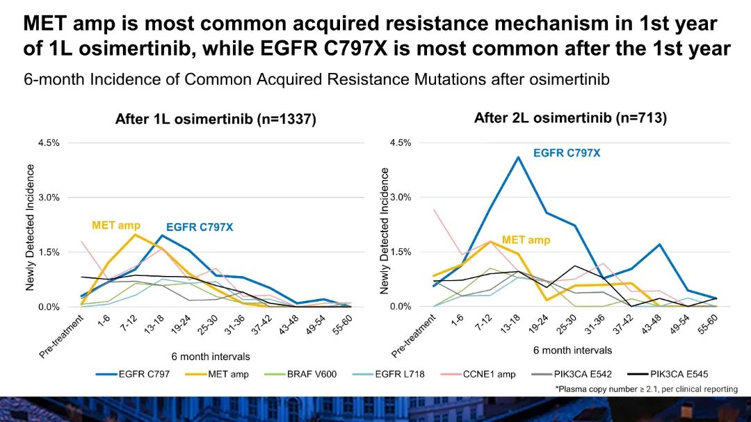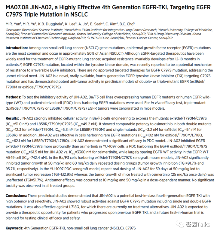 在开启今天的内容之前,我们先了解一则古希腊的神话故事:阿喀琉斯之踵(Achilles' Heel)! ![]() 阿喀琉斯(Achilles)是古希腊神话中的英雄,是凡人英雄珀琉斯(Peleus)和海洋女神忒提斯(Thetis)的爱子。忒提斯为了让儿子炼成“金刚不坏之身”,在他刚出生时就将其倒提着浸进冥河。遗憾的是,因水流湍急,阿喀琉斯的母亲捏着他的脚后跟不敢松手,所以脚踵未被冥河水浸润,留下了全身唯一的“致命弱点”。后来就是因为这个“致命弱点”,阿喀琉斯在特洛伊战争中被敌人一箭射中脚踵而死。现在常用“阿喀琉斯之踵” 譬喻这样一个道理:即使是再强大的英雄,也有致命的死穴或软肋。 奥希替尼(Tagrisso)是三代EGFR酪氨酸激酶抑制剂(EGFR-TKI),基于其与早期一代EGFR抑制剂相比的优势,现在已成为一线治疗的标准药物。该药物获得了FDA、NMPA以及其他国家监管机构的批准,用于特定EGFR突变NSCLC患者的二线、一线和辅助治疗,显著改善了EGFR突变NSCLC患者的预后。不过,患者一旦治疗进展,治疗选择将非常有限(化疗或参加临床试验)。 在最近的一系列研究中,研究人员和制药企业阐明了EGFR-TKI奥希替尼的分子耐药机制,以及几种可能用于解决这个问题的四代EGFR-TKIs药物研发管线。 2022年8月8日的WCLC上,Winship Cancer Institute(研究机构)、Guardant Health(NGS公司)和Blueprint Medicines(制药企业)合作报告了使用GuardantINFORM真实世界证据平台分析了去识别化(de-identified)的临床和基因组学数据(5年随访)结果,其中包括 65,273 名晚期NSCLC成人患者。在这些患者中,4,288名患者在一线或二线治疗中接受了奥希替尼的治疗,2,050名患者在治疗期间进行了ctDNA检测(一线1,337名,二线713名)。结果发现:EGFR C797X是最常见的靶内耐药突变,在接受奥希替尼治疗一年后,EGFR C797X耐药突变比MET和CCNE1扩增的脱靶耐药突变更常见。1 ▲ EGFR C797X是最常见的靶内耐药突变 累积分析表明,当奥希替尼用作一线治疗时,EGFR C797X突变的发生率是MET扩增的1.25倍;用作二线治疗时,是MET扩增的2.4倍。在接受奥希替尼一线治疗后可能出现疾病进展的患者中,EGFR C797X突变的累积发生率为12.5%。MET扩增是奥希替尼一线治疗第一年最常见的耐药突变,EGFR C797X突变在第二年至第五年均超过了MET扩增。 ▲ 奥希替尼1L和2L治疗后耐药突变的累积发生率曲线 此研究表明,随着患者长期接受一线奥希替尼治疗,EGFR C797X突变的频率明显增加,这加强了对四代EGFR抑制剂的需求,以解决C797X驱动的耐药性。 EGFR C797X耐药突变包括C797S和C797G(较罕见2,3),最常见突变类型还是C797S突变,即797位点的半胱氨酸残基被丝氨酸取代,导至奥希替尼与突变EGFR之间的共价键丧失(奥希替尼是通过C797氨基酸共价键不可逆地结合到某些突变形式的EGFR,如L858R、19del及T790M等4),阻止奥希替尼与EGFR活性位点结合。此外,也没有办法通过增加药物剂量来绕开它,这对奥希替尼来说是“绝对的致命弱点”,即三代EGFR抑制剂的“阿喀琉斯之踵”。 ▲ 三代EGFR抑制剂的“阿喀琉斯之踵” EGFR C797S突变已超越MET扩增成为三代EGFR抑制剂的主要耐药机制。但是目前,尚未有批准用于EGFR C797S(耐药)突变的药物。 既往临床研究发现:1)当没有T790M突变的情况下,携带EGFR C797S突变对一代和二代EGFR-TKIs敏感;2)当EGFR C797S突变与T790M突变在不同等位基因(不同染色体)中共存的情况下(反式突变)也对一代和二代EGFR-TKIs敏感;3)当EGFR C797S突变与T790M突变在相同等位基因(相同染色体)中共存的情况下(顺式突变)将会对一代、二代和三代EGFR-TKIs耐药,这时候就需要四代EGFR抑制剂(具有抗C797X的活性)来解决这一问题。5 ▲ 如何打破三代EGFR抑制剂的“阿喀琉斯之踵” 2022 WCLC的另一场演讲中,研究人员展示了一款四代EGFR-TKI BBT-176(可逆ATP竞争抑制剂,韩国制药企业Bridge Biotherapeutics)的早期数据。I期临床研究纳入大约24名既往接受过EGFR-TKIs治疗(80%使用奥希替尼)的EGFR突变患者,并进行影像学检测,每6周进行一次Guardant液体活检。6 截至2022年3月10日,共有18例患者接受了BBT-176治疗(耐受性良好,毒性可控),其中5例患者血液样本检测出EGFR三重突变(triple mutant):19del/T790M/C797S或L858R/T790M/C797S。 对18名接受治疗患者中的5名进行治疗前、后液体活检检测分析,在3例患者中观察到EGFR突变等位基因频率(VAF)降低(ctDNA分析可能有助于识别最可能受益于BBT-176的患者),包括非经典的外显子19缺失(L747_K754delinsSPQ)和T790M突变。这些变化与其中两名患者的肿瘤缩小有关。另外,最值得注意的是,2名存在三重突变(19del/T790M/C797S顺式)患者的靶病灶和非靶病灶均有缩小。所有5例患者仍在接受治疗,治疗时间均超过20周。 ▲ BBT-176药物代表性患者的临床结果 可以肯定的是,这些数据是早期的,而且只在少数几个经过筛选的患者中得到。未来,Bridge生物治疗公司将优化BBT-176的剂量,以提高耐受性和疗效。在确定II期剂量后,研究人员预计明年开始II期临床研究。 Bridge生物治疗公司并不是唯一一家致力于解决三代EGFR-TKIs耐药的制药企业。同样位于韩国的制药企业J Ints Bio也在2022 WCLC会议上分享了其针对C797S耐药突变的第四代EGFR-TKI JIN-A02的临床前数据,令人鼓舞。7 研究数据来自小鼠模型数据,但临床数据可能即将公布,因为J Ints Bio在6月份向FDA提交了一份新药研究申请,以评估JIN-A02的I/II期临床试验。 另一家制药企业Blueprint Medicines正在研究候选药物BLU-945和BLU-701,以通过靶向EGFR