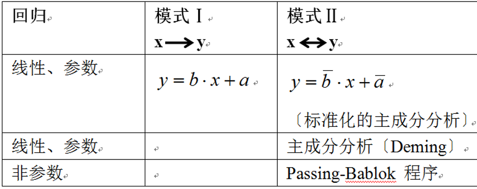 注:我认为,Bablok的回归模式I,应该是x为自变量,y为因变量的关系。