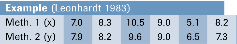 Deming解决了模式II中的回归分析问题,通过在x和y方向上同时使残差(数据点和回归线间的距离)平和为最小(主成分分析,Cornbleet 1979,Wakkers 1975)。按照Deming的回归系数bD计算如下: