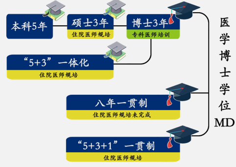 ▲图2 目前中国的医学生要取得医学博士学位的可能路径 | 图源[1]