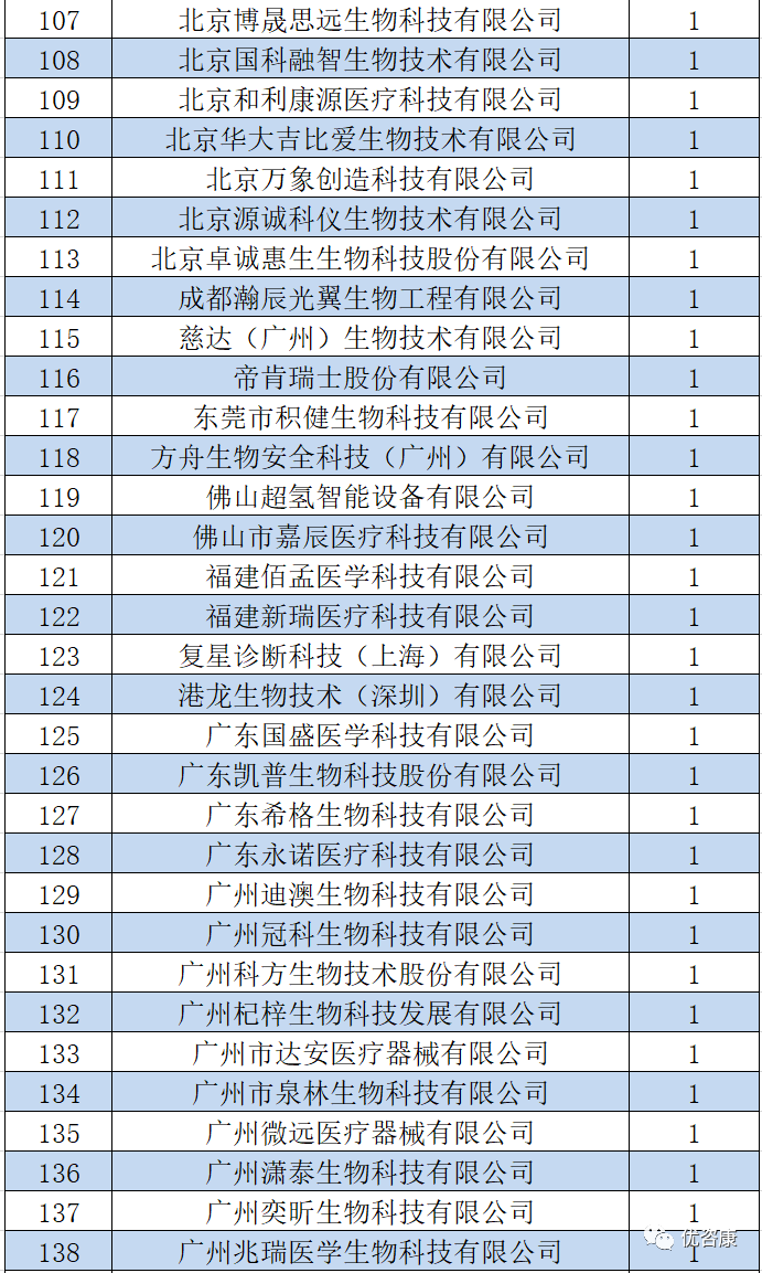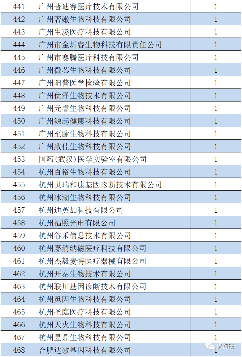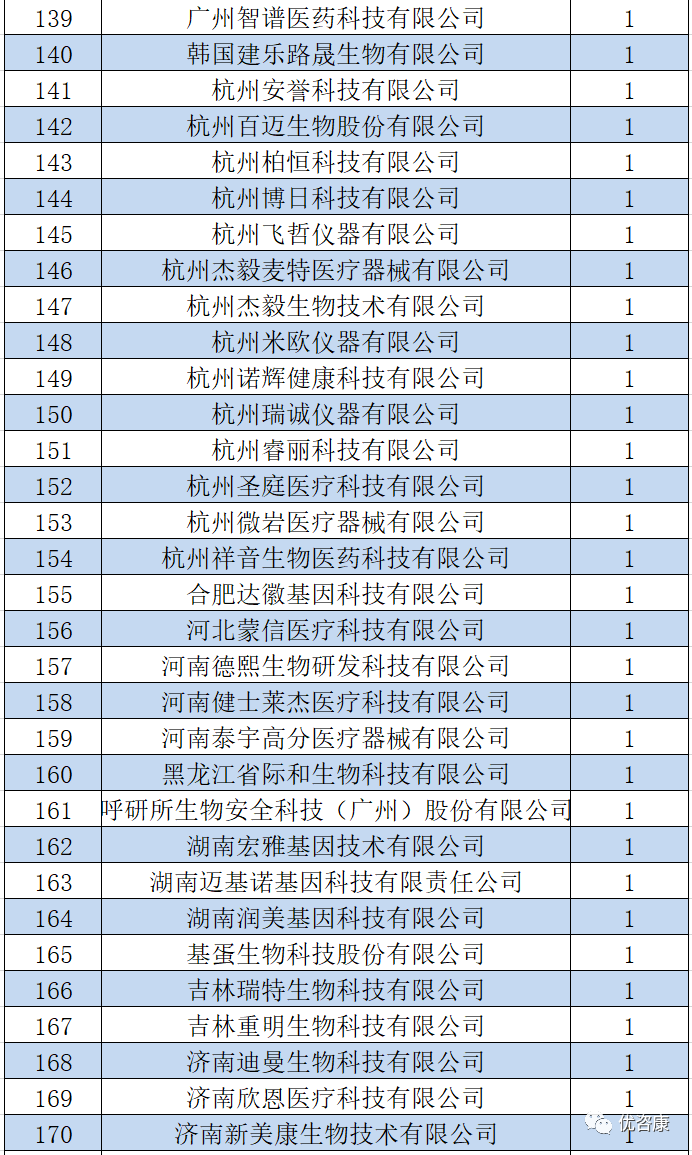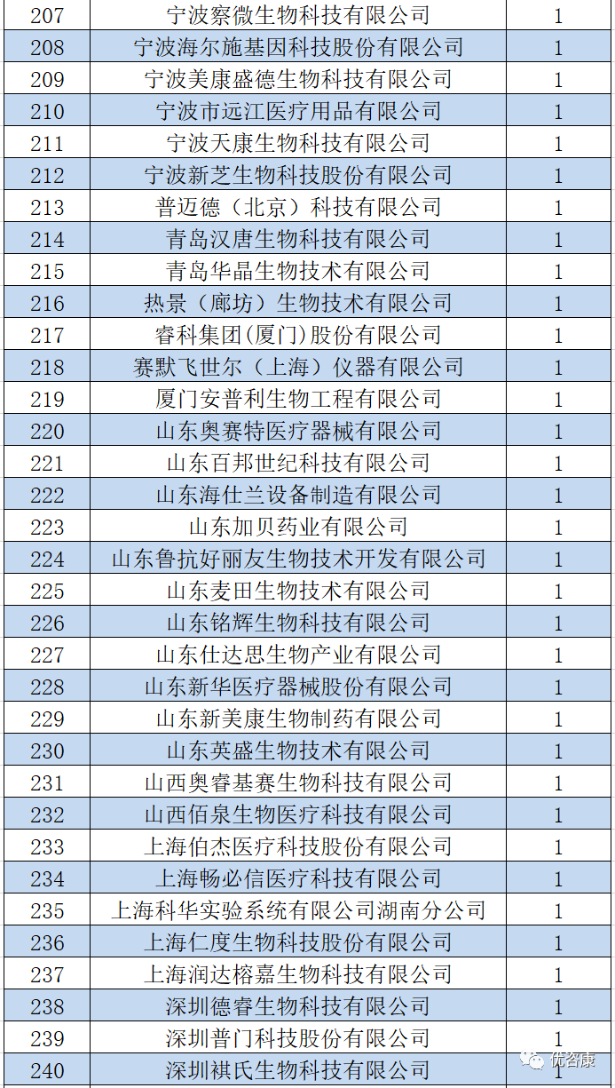 核酸检测领域为IVD领域的核心重要组成部分,近年IVD热门赛道像伴随诊断、用药指导、肿瘤筛查、肿瘤辅助诊断、病原微生物检测等绝大多数产品都涉及核酸检测,像PCR、NGS、恒温扩增及数字PCR等技术都是需要进行核酸提取的,大约98%以上的核酸检测产品是需要单独进行核酸提取/纯化的(经验数据估计)。 截止到2022年8月12日(下同),获证(备案)的核酸提取类产品有2960款,根据其用途可以分成两大类:核酸提取试剂(2459款)和核酸提取仪器(501款)。布局核酸提取仪的公司中,有56.6%的公司同时在布局核酸提取试剂;布局核酸提取试剂的公司中,有24.1%的公司同时在布局核酸提取仪。 随着软硬件及原材料的快速发展,现在越来越多的核酸提取试剂盒可以采用仪器进行提取,目前,获证的核酸提取类仪器有501款:涉及293家境内公司,境外公司18家(不含提取扩增的仪器)。获证数前3的公司为:上海之江(12款产品)、台湾圆点(11款产品)、广东凯普(10款产品),具体数据见表1。 表 1 核酸提取仪器公司 结合核酸提取试剂的数据,有56.6%的核酸提取仪公司也在布局提取试剂。 获证公司主要集中在经济发达省份/地区,其中,广东、江苏、山东、浙江和上海是排前五名的省份(注:台湾省按境内公司统计),占总数的63.3%,具体数据看图1。 图 1 核酸提取仪器公司分布 产品年度批准情况见图2。从2014开始,核酸提取仪逐渐变多,这与IVD产品的大趋势是一致的:减少手工操作。 图2 产品年度获批情况 备注:产品年度按注册证编号前4位统计,有些产品的年度和获批年度可能不一致。 目前,核酸提取试剂以单独形式存在占绝大多数,含在三类试剂盒的极少。目前,获证的核酸提取试剂共有2459款,涉及705家境内公司,境外公司26家。境内公司获证数靠前的5家公司为:厦门致善(56款产品)、成都新百基(46款产品)、广州达安(39款产品)、上海之江(37款产品)和江苏康为世纪(36款产品),具体数据见表2。