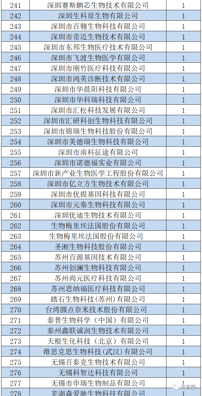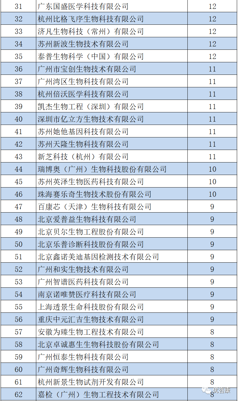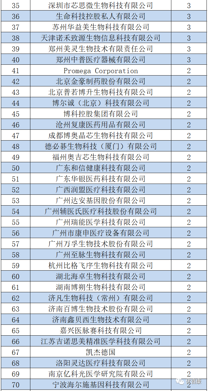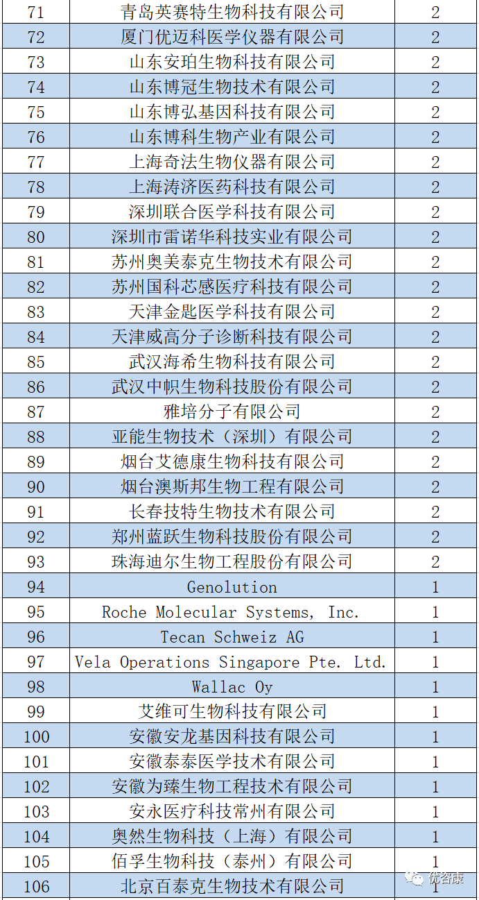 核酸检测领域为IVD领域的核心重要组成部分,近年IVD热门赛道像伴随诊断、用药指导、肿瘤筛查、肿瘤辅助诊断、病原微生物检测等绝大多数产品都涉及核酸检测,像PCR、NGS、恒温扩增及数字PCR等技术都是需要进行核酸提取的,大约98%以上的核酸检测产品是需要单独进行核酸提取/纯化的(经验数据估计)。 截止到2022年8月12日(下同),获证(备案)的核酸提取类产品有2960款,根据其用途可以分成两大类:核酸提取试剂(2459款)和核酸提取仪器(501款)。布局核酸提取仪的公司中,有56.6%的公司同时在布局核酸提取试剂;布局核酸提取试剂的公司中,有24.1%的公司同时在布局核酸提取仪。 随着软硬件及原材料的快速发展,现在越来越多的核酸提取试剂盒可以采用仪器进行提取,目前,获证的核酸提取类仪器有501款:涉及293家境内公司,境外公司18家(不含提取扩增的仪器)。获证数前3的公司为:上海之江(12款产品)、台湾圆点(11款产品)、广东凯普(10款产品),具体数据见表1。 表 1 核酸提取仪器公司 结合核酸提取试剂的数据,有56.6%的核酸提取仪公司也在布局提取试剂。 获证公司主要集中在经济发达省份/地区,其中,广东、江苏、山东、浙江和上海是排前五名的省份(注:台湾省按境内公司统计),占总数的63.3%,具体数据看图1。 图 1 核酸提取仪器公司分布 产品年度批准情况见图2。从2014开始,核酸提取仪逐渐变多,这与IVD产品的大趋势是一致的:减少手工操作。 图2 产品年度获批情况 备注:产品年度按注册证编号前4位统计,有些产品的年度和获批年度可能不一致。 目前,核酸提取试剂以单独形式存在占绝大多数,含在三类试剂盒的极少。目前,获证的核酸提取试剂共有2459款,涉及705家境内公司,境外公司26家。境内公司获证数靠前的5家公司为:厦门致善(56款产品)、成都新百基(46款产品)、广州达安(39款产品)、上海之江(37款产品)和江苏康为世纪(36款产品),具体数据见表2。
